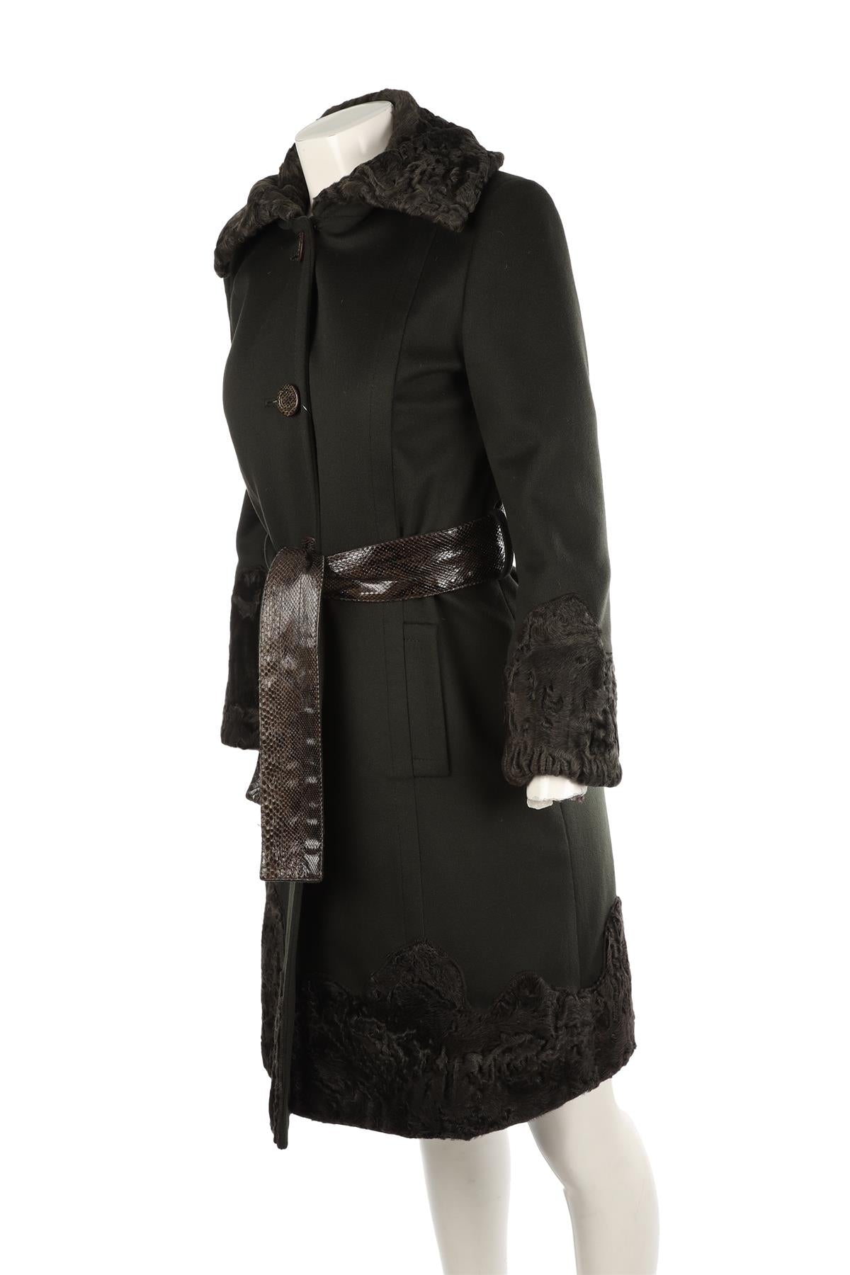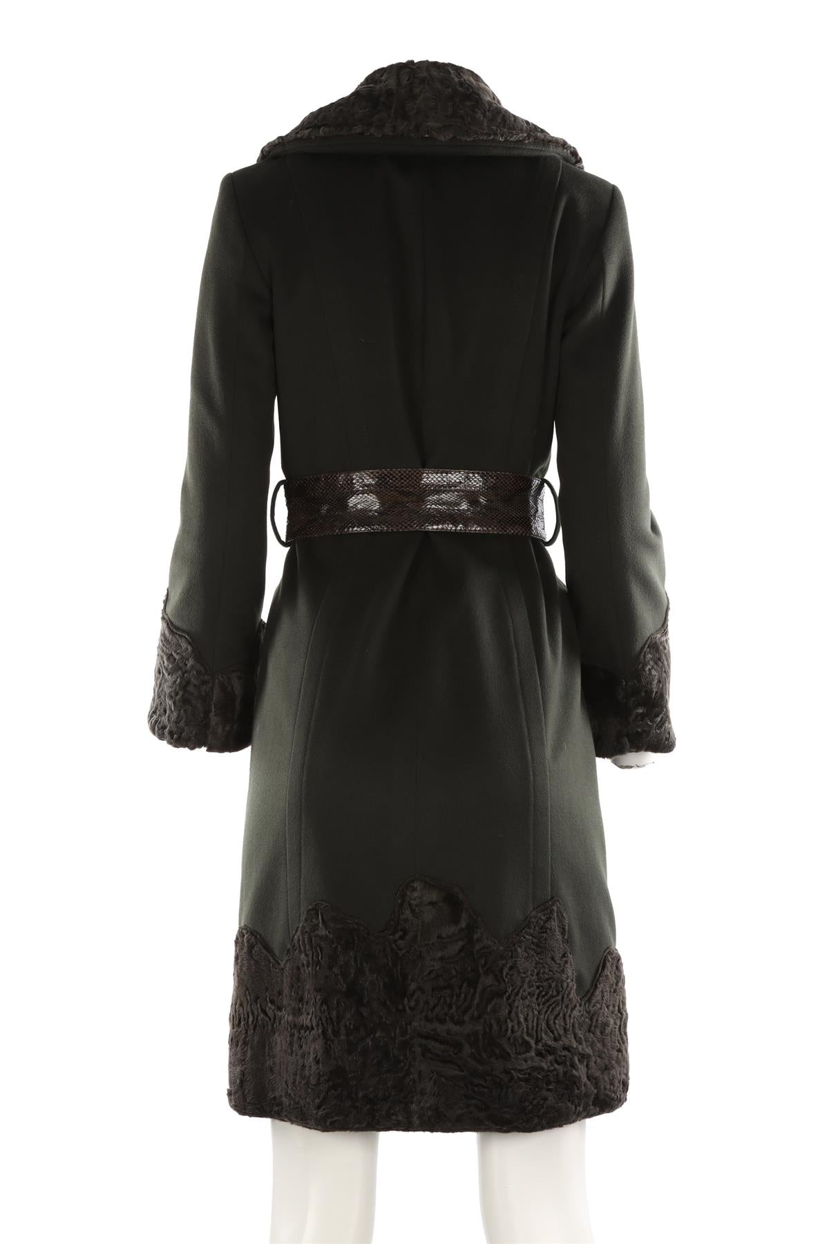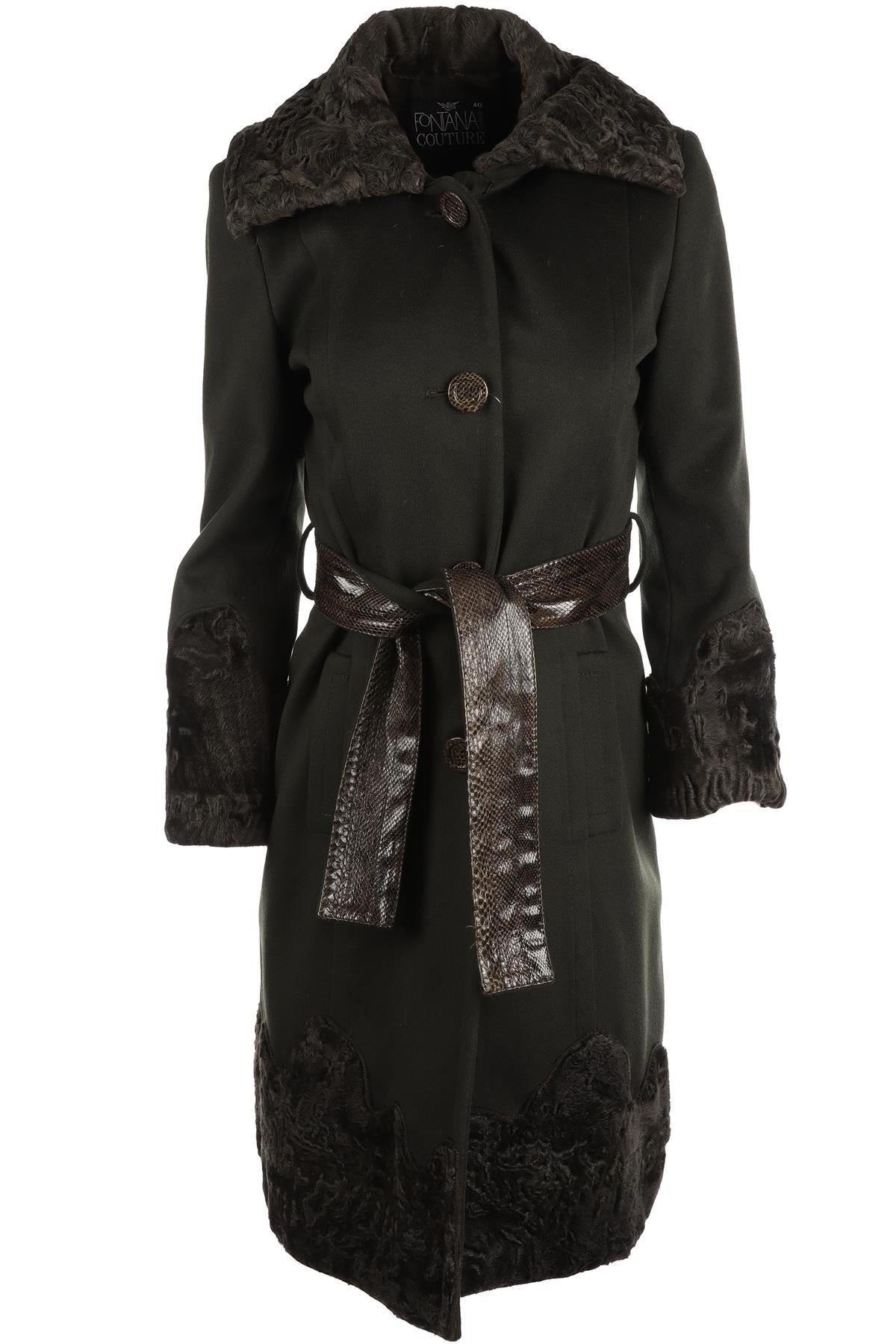 FONTANA COUTURE GREEN VINTAGE PERSIAN LAMB AND WOOL COAT IT 40 UK 8