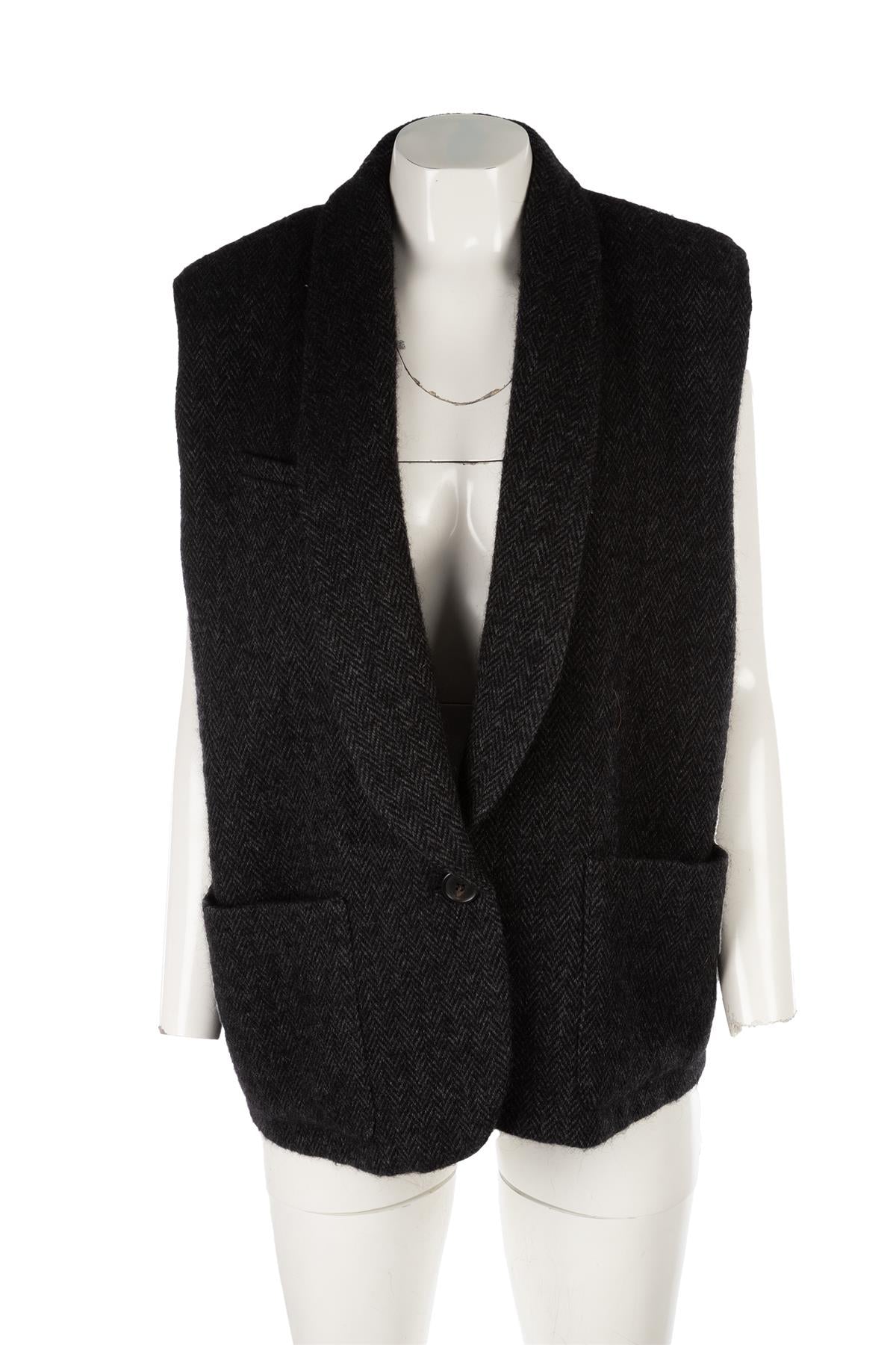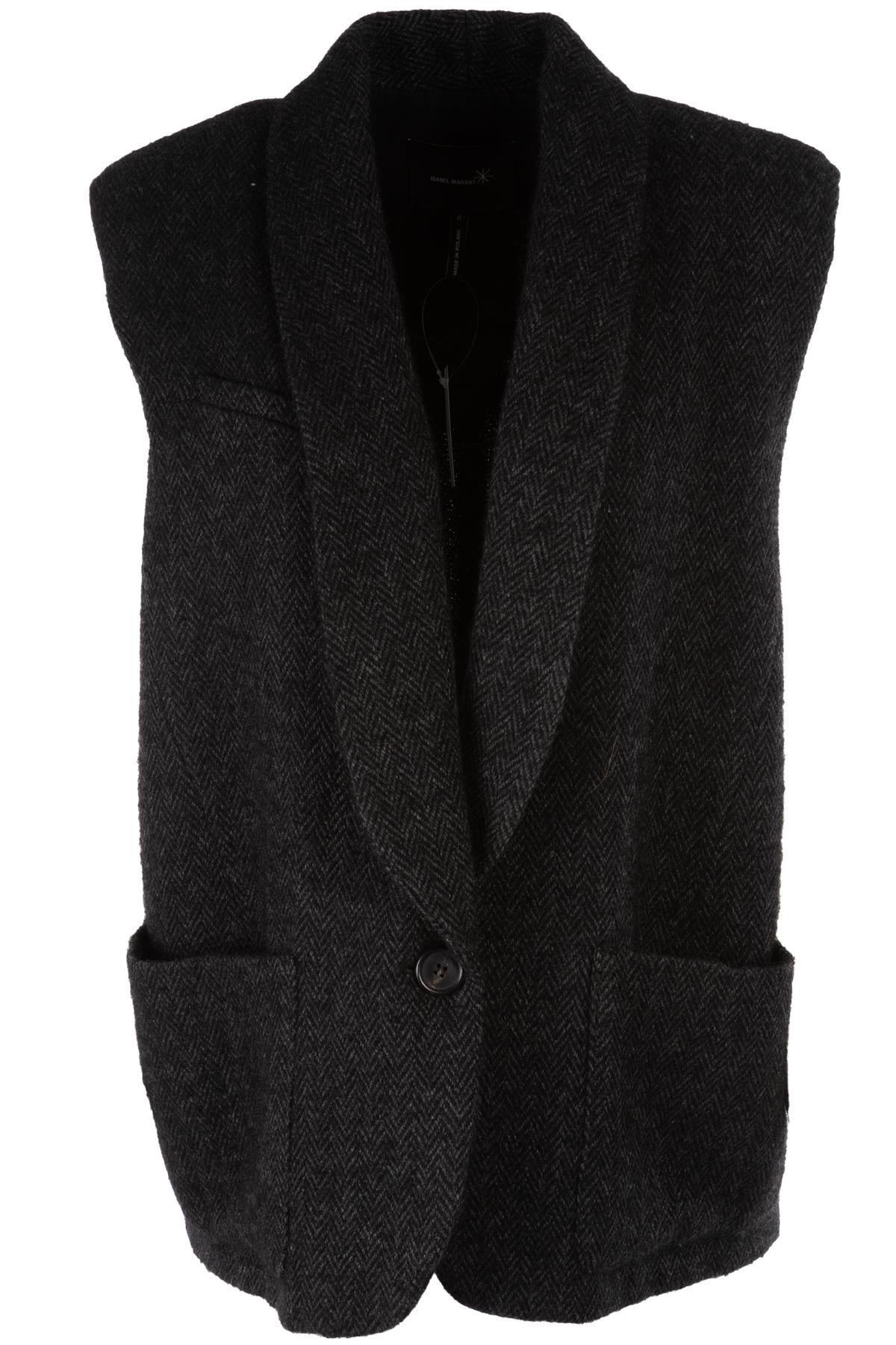 Isabel Marant Black Wool Gilet. Black. Sleeveless. V-Neck. Snap button fastening - Front. 64% Wool, 13% Alpaca, 13% Mohair, 10% Polyamide. 0 (UK 6, US 2). Bust: 47 in. Waist: 46 in. Hips: 46 in. Length: 28 in.