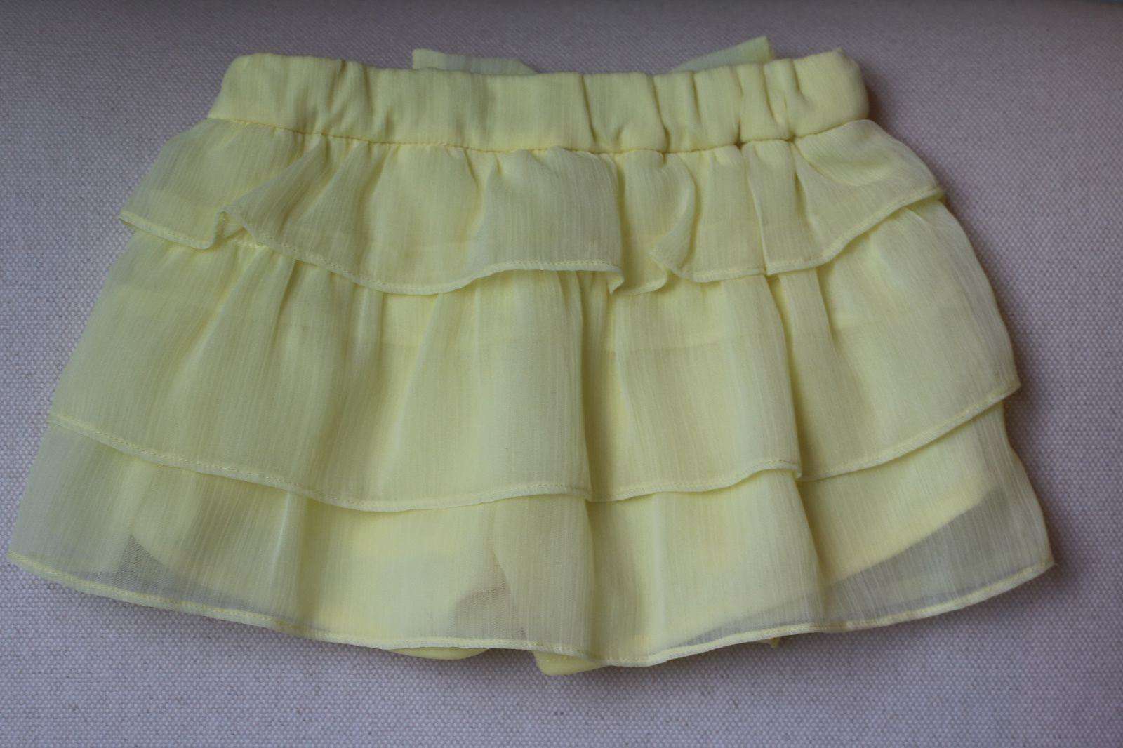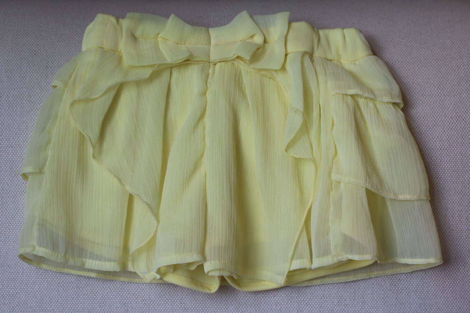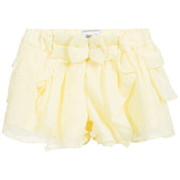 Mayoral Skort. Girls yellow chiffon skort shorts by Mayoral Chic. Made in lightweight polyester chiffon, they have pretty ruffle tiers, with jersey shorts underneath. The waistband can be adjusted for a more comfortable fit. Size - 2 years Ref: SB5