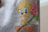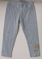Pretty grey cotton jersey leggings with a diamante tweety pie motif at the ankle.
