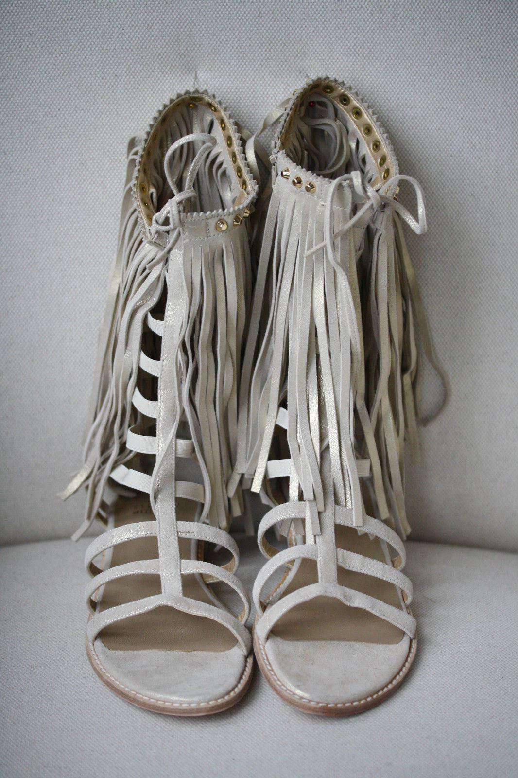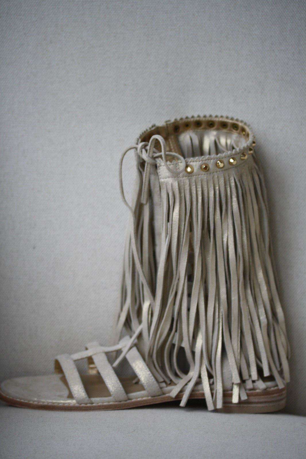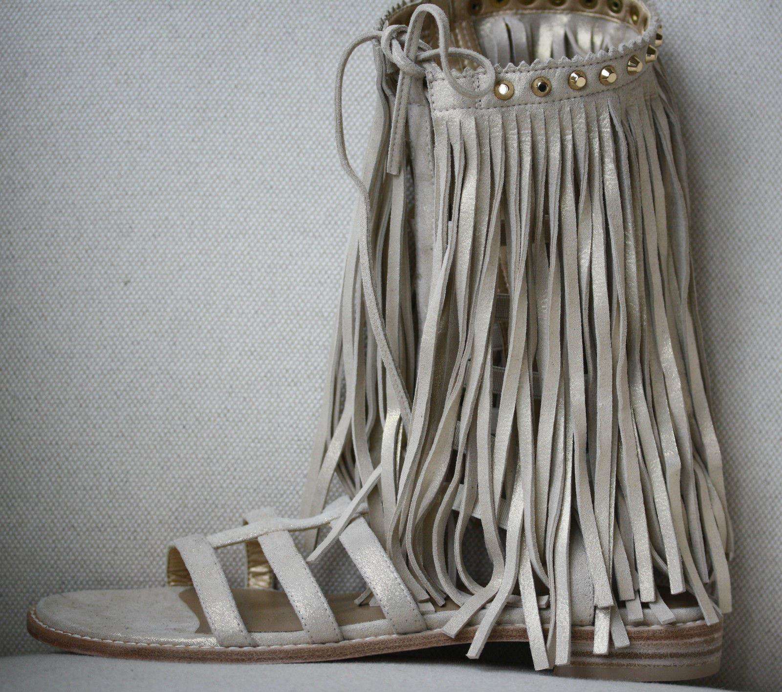 STUART WEITZMAN METALLIC BEIGE FRINGE BENEFIT SANDALS US 6.5 UK 4.5