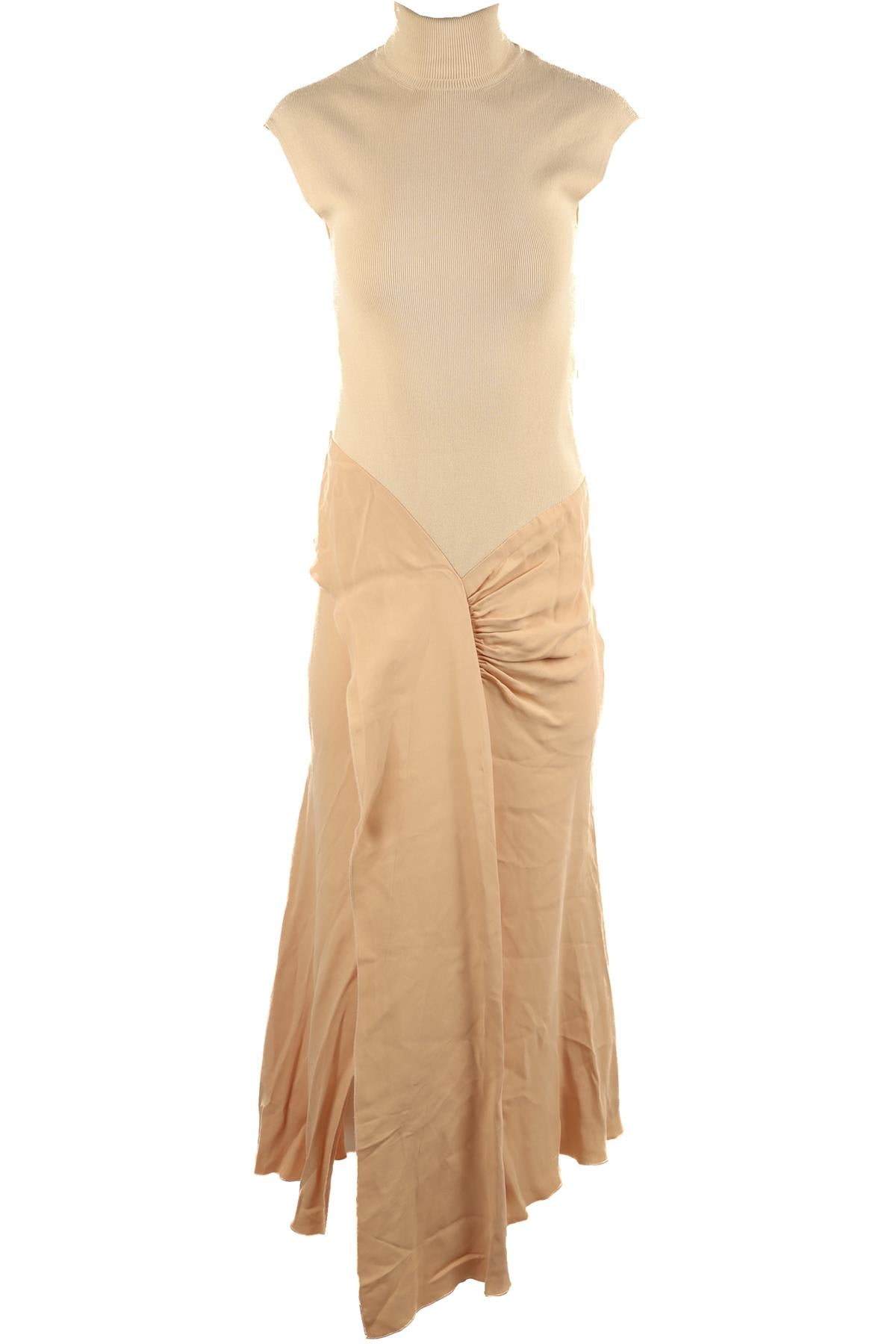 Victoria Beckham Nude Cotton Maxi Dress. Nude and cream. Sleeveless. Turtleneck. Zip fastening - Side. 60% Viscose, 30% Cotton, 9% Polyamide, 1% Elastane, 100% Viscose. UK 8 (US 4, FR 36, IT 40). Bust: 26 in. Waist: 24 in. Hips: 34 in. Length: 57 in.