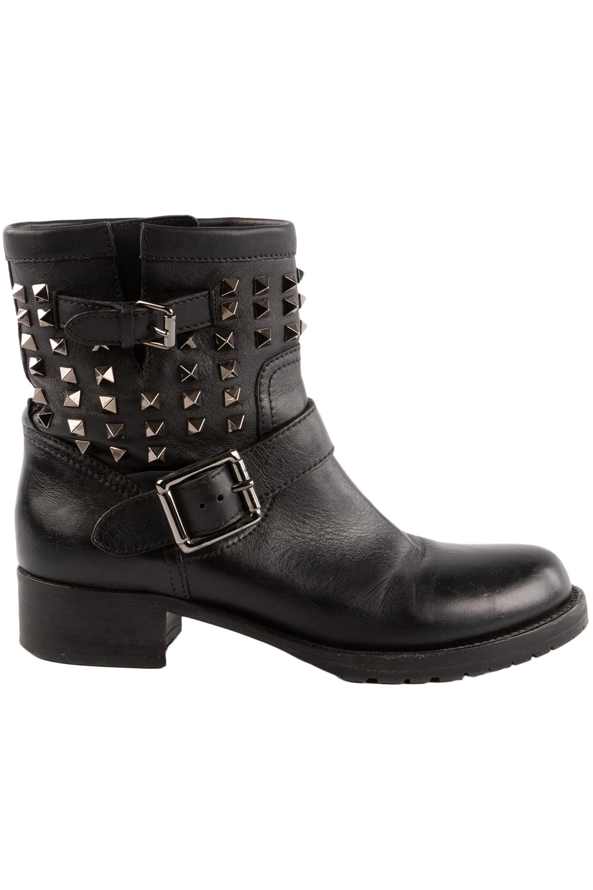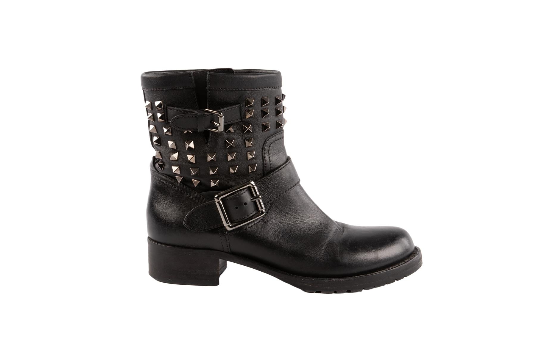 VALENTINO GARAVANI BLACK ROCKSTUD LEATHER ANKLE BOOTS EU 39