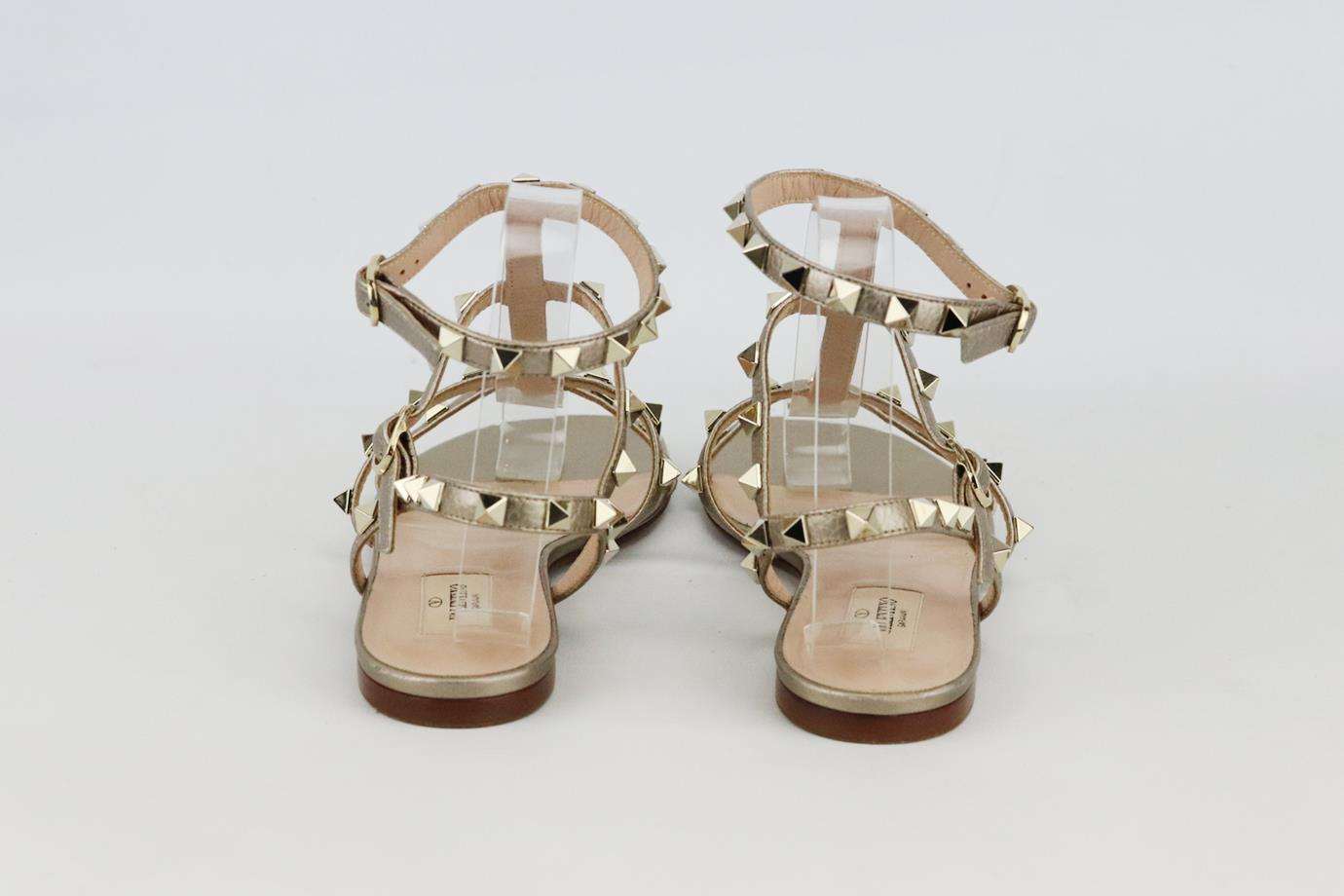 VALENTINO GARAVANI ROCKSTUD METALLIC LEATHER SANDALS EU 37.5 UK 4.5 US 7.5