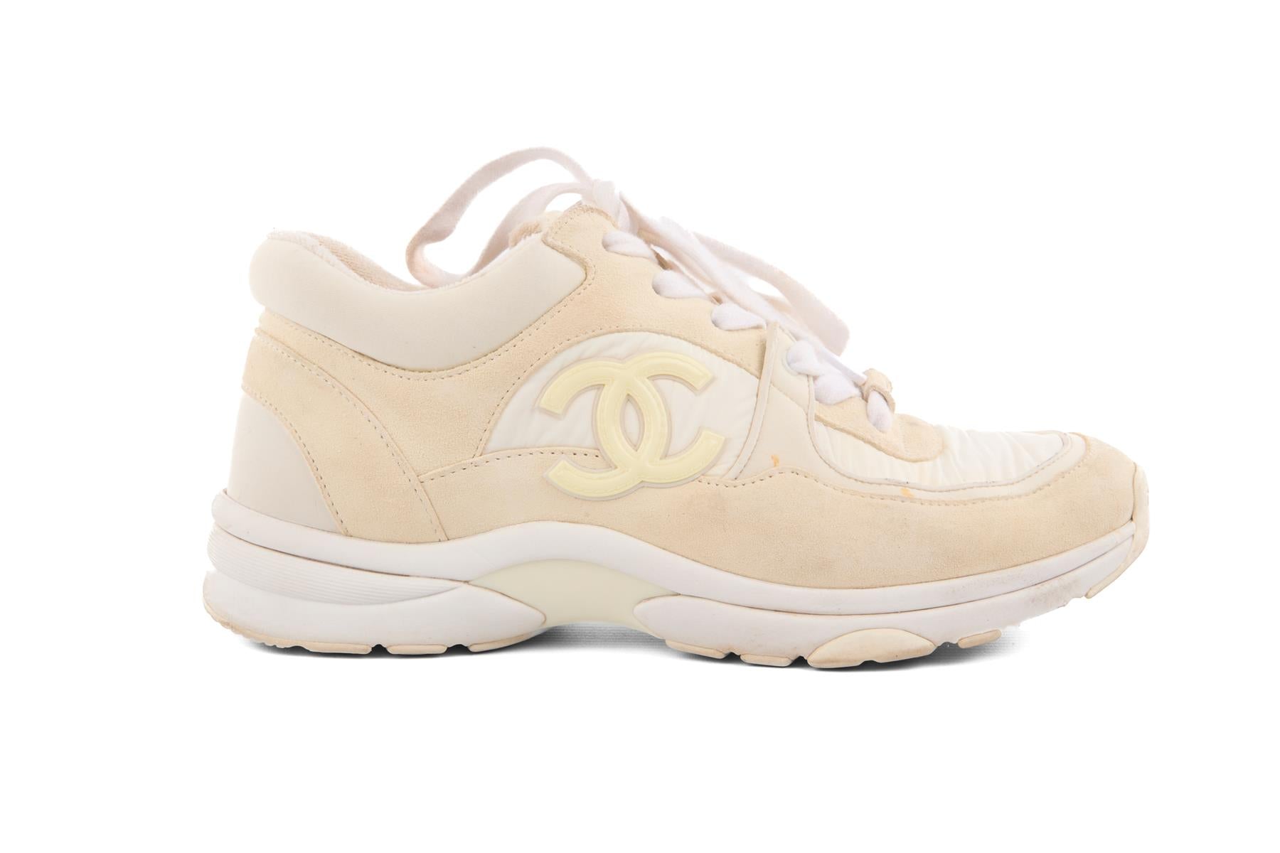 CHANEL WHITE CC SUEDE SNEAKERS EU 39 UK 6 US 9