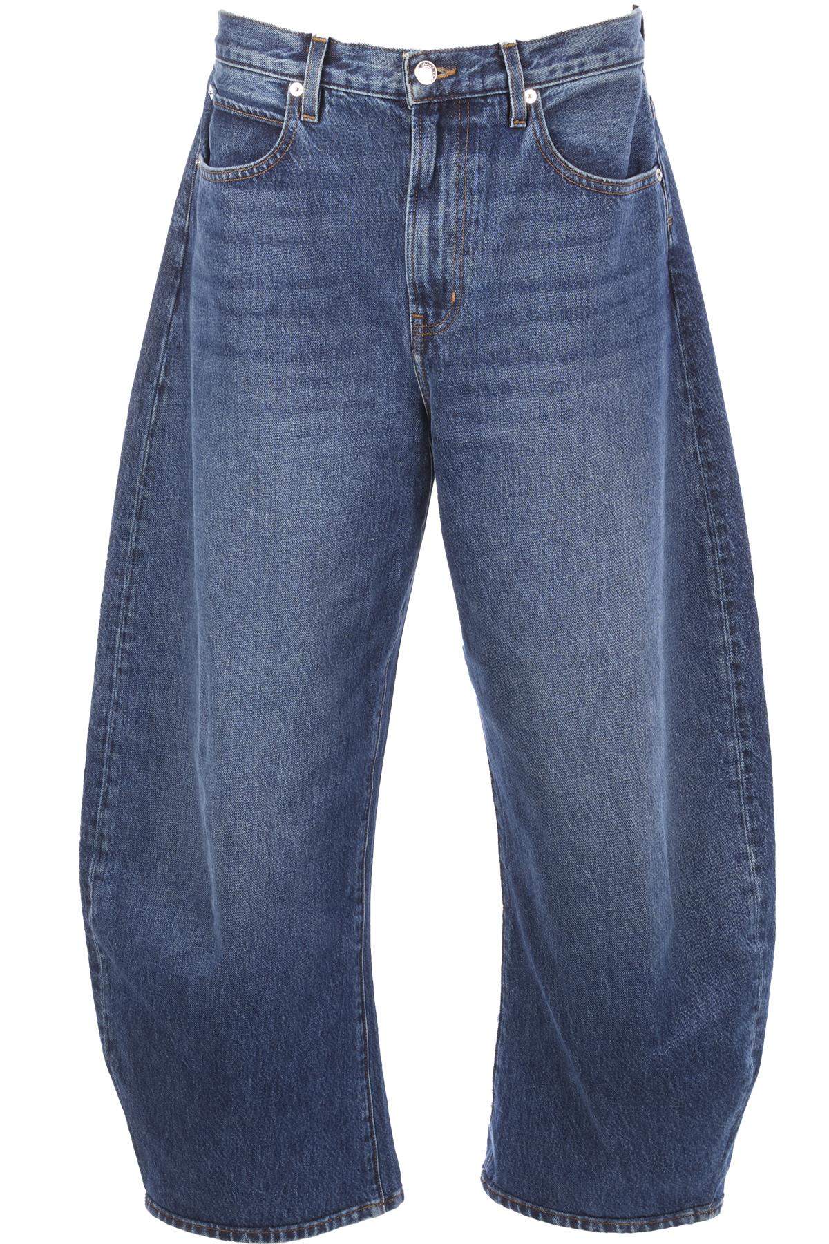 FRAME BLUE HIGH RISE BARREL LEG JEANS W29