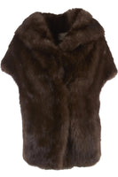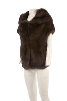 Yves Salomon Brown Sable Fur Jacket. Brown. Sleeveless. Crewneck. Hook and eye fastening - Front. 100% Real Fur, 100% Silk. FR 36 (UK 8, US 4, IT 40). Shoulder to Shoulder: 36 in. Bust: 37 in. Waist: 37 in. Hips: 22 in. Length: 26 in.