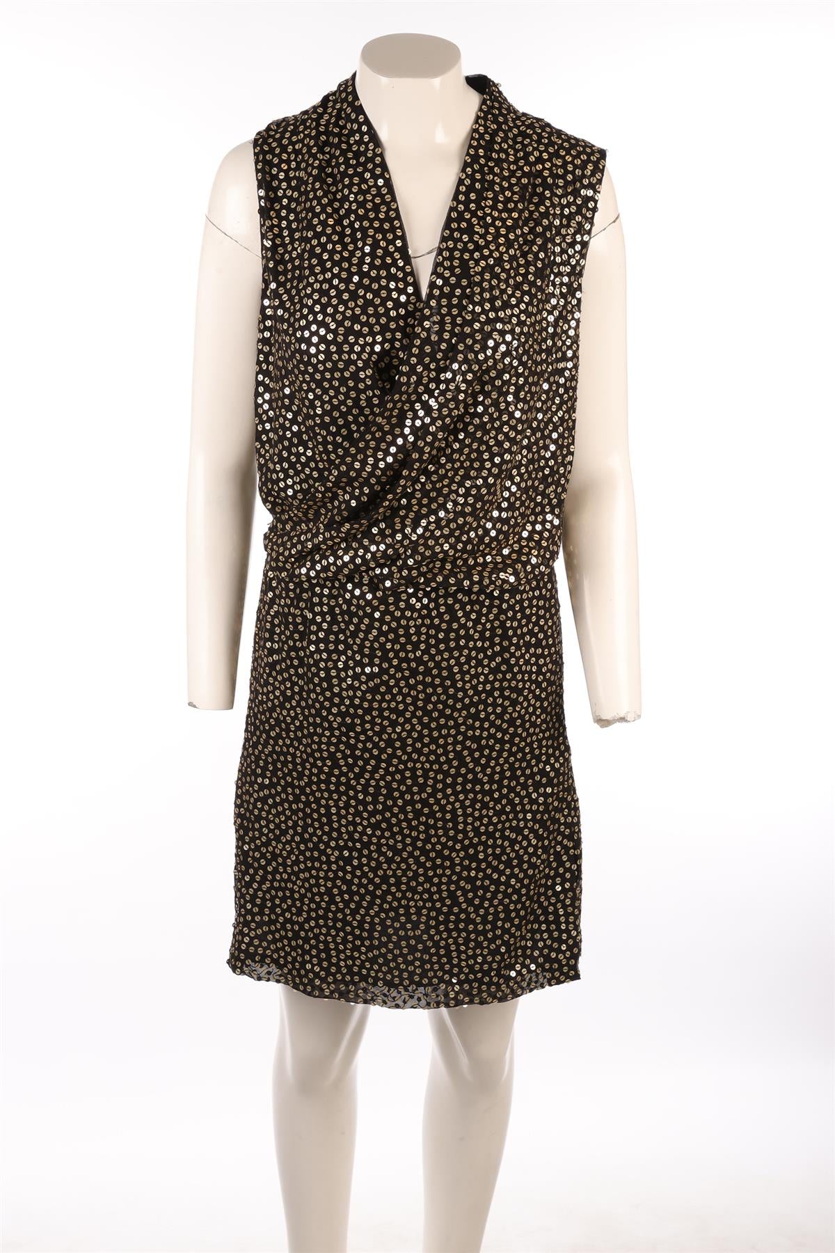 DIANE VON FURSTENBURG BLACK SEQUIN MINI DRESS US 2 UK 6