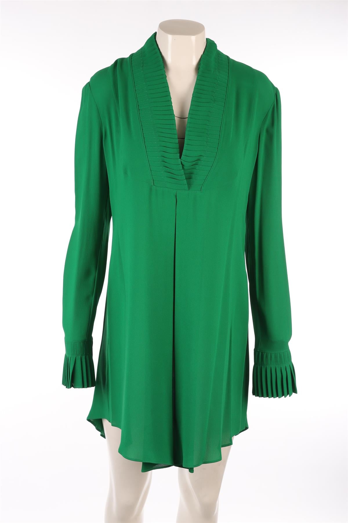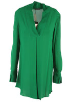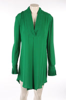 Alexander Mcqueen Green Silk Mini Dress. Green. Long Sleeve. V-Neck. Pull on. 100% Silk. IT 40 (UK 8, US 4, FR 36). Bust: 34 in. Waist: 30 in. Hips: 40 in. Length: 38 in.