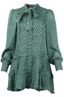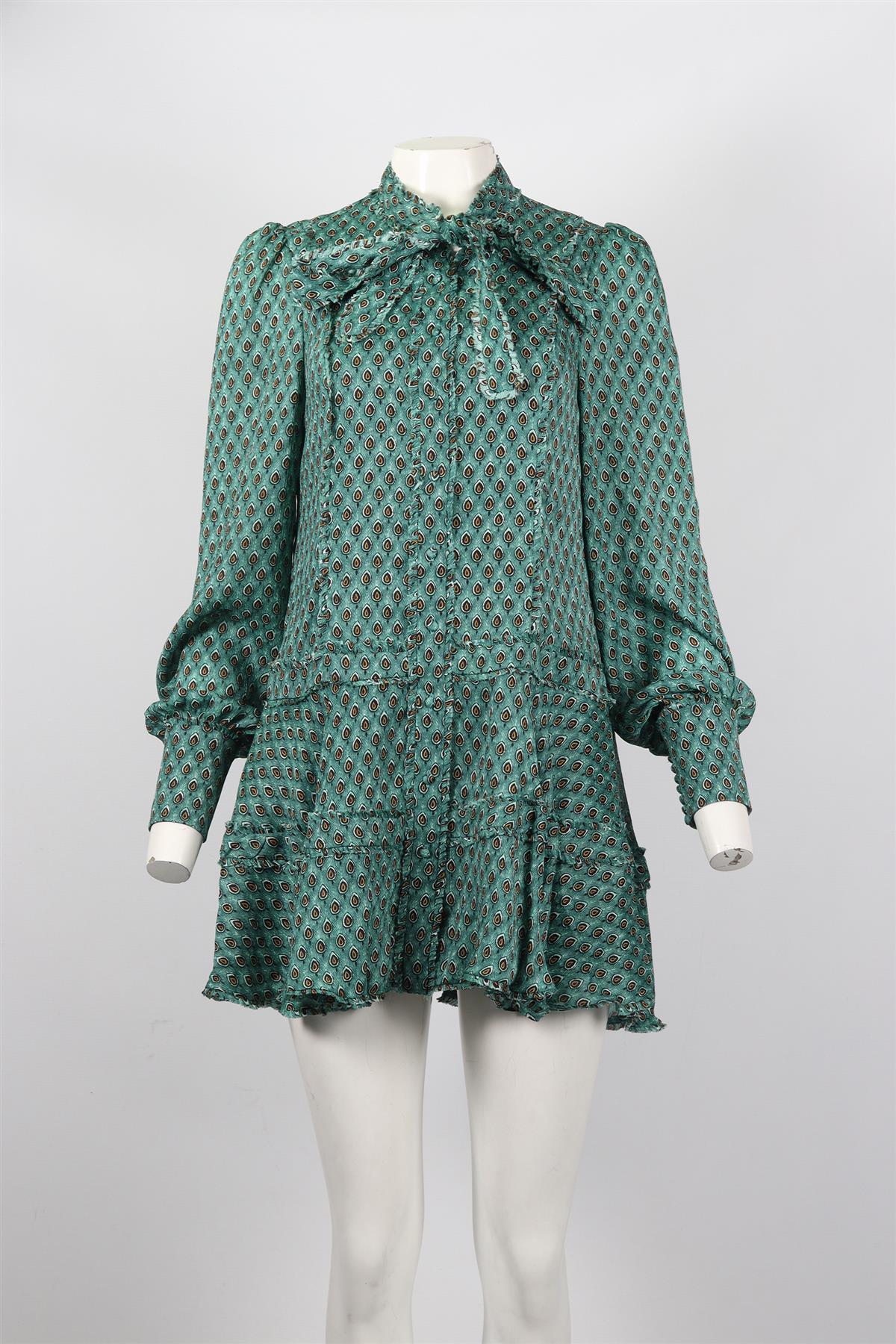 Alexis Satin Mini Dress. Green. Long Sleeve. Turtleneck. Button fastening - Front. 100% Polyester. Medium (UK 10, FR 38, IT 42, US 6). Bust: 40 in. Waist: 38 in. Hips: 62 in. Length: 32 in.