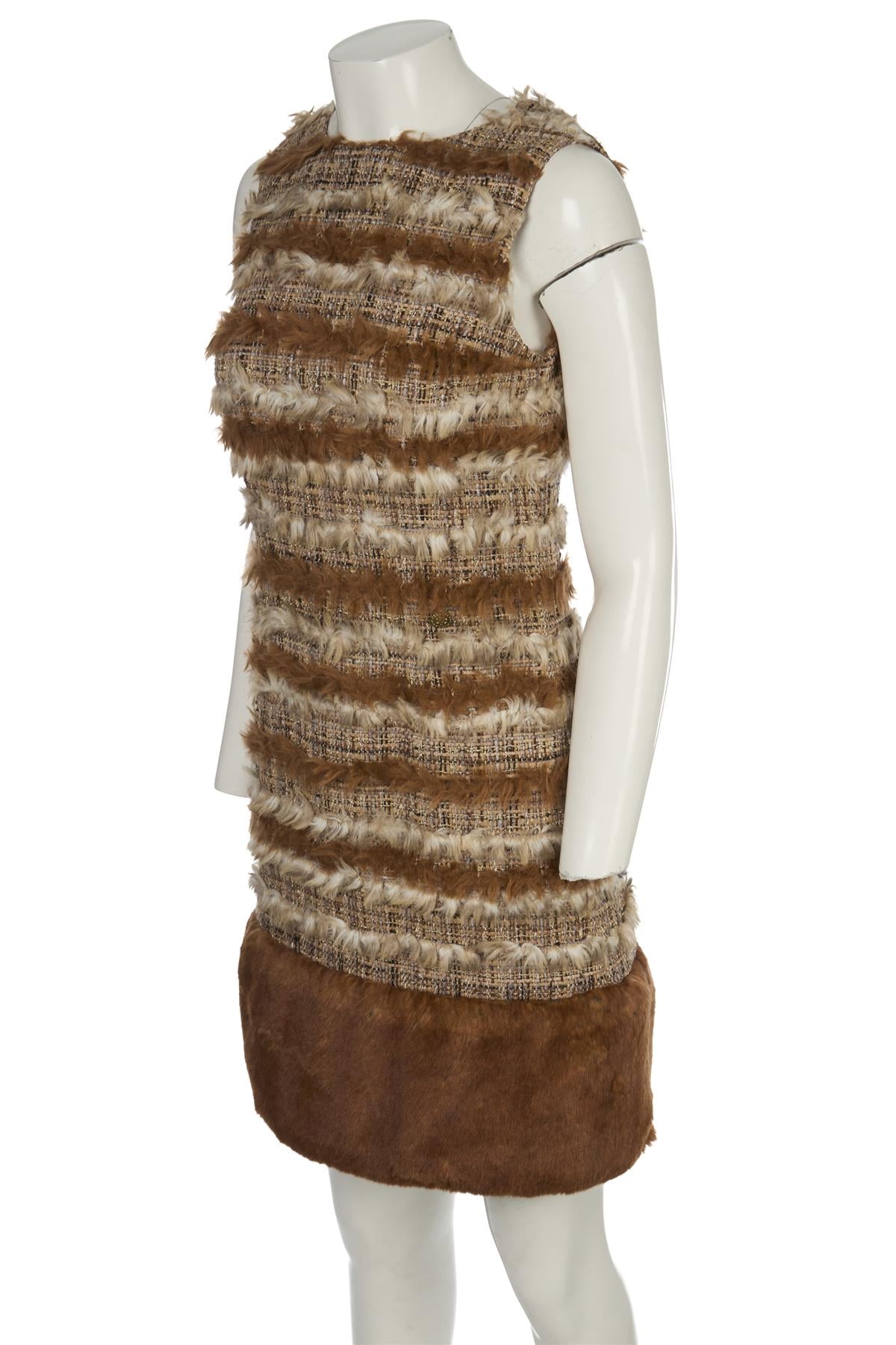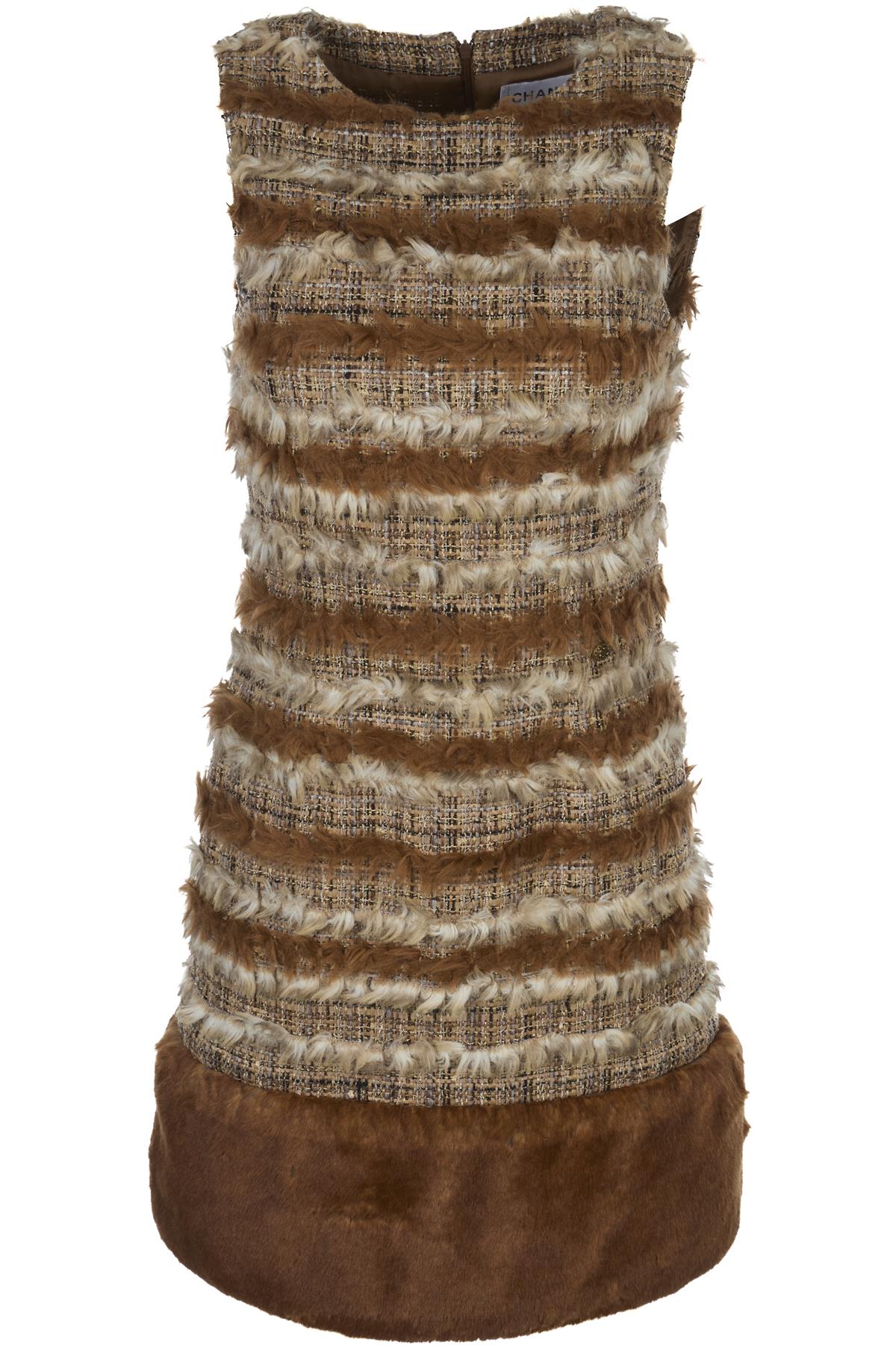 • Chanel Brown 2010 Faux Fur And Tweed Mini Dress.