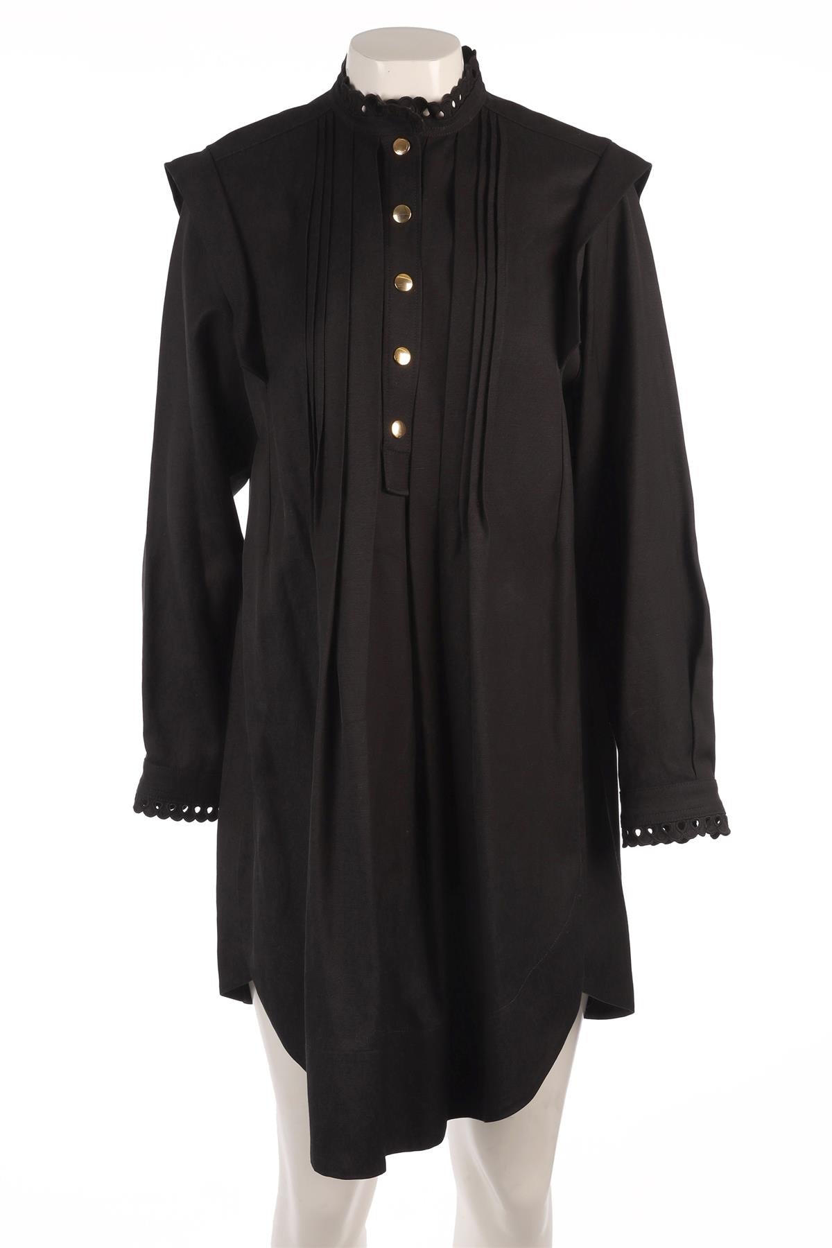 Chloé Black Linen Mini Dress. Black. Long Sleeve. Mock Neck. Button fastening - Front. 85% Viscose, 15% Linen. FR 38 (UK 10, US 6, IT 42). Bust: 39 in. Waist: 38.5 in. Hips: 43 in. Length: 36.5 in.