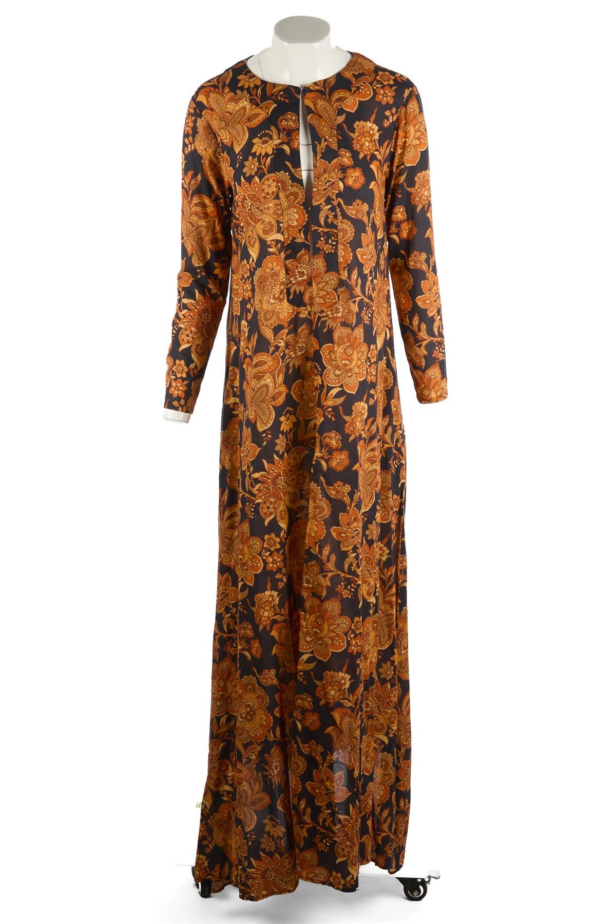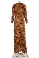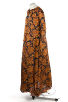 Dodo Bar Or Orange Cotton Maxi Dress. Orange, brown and black. Long Sleeve. Crewneck. Tie fastening - Front. 100% Cotton. Small (UK 8, US 4, FR 36, IT 40). Bust: 36 in. Waist: 34 in. Hips: 40 in. Length: 55.5 in.