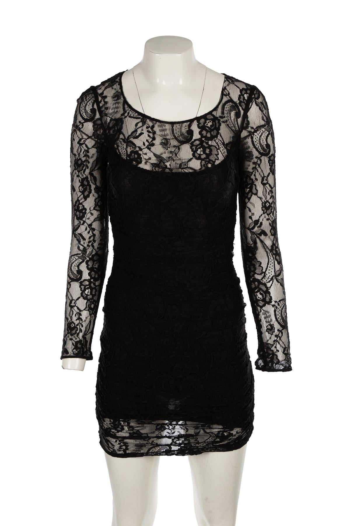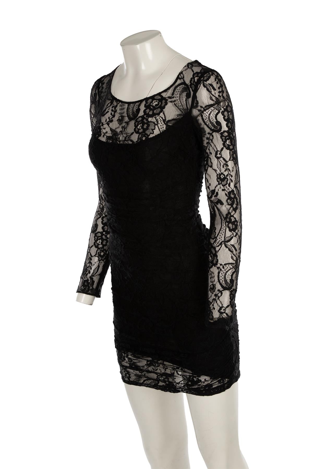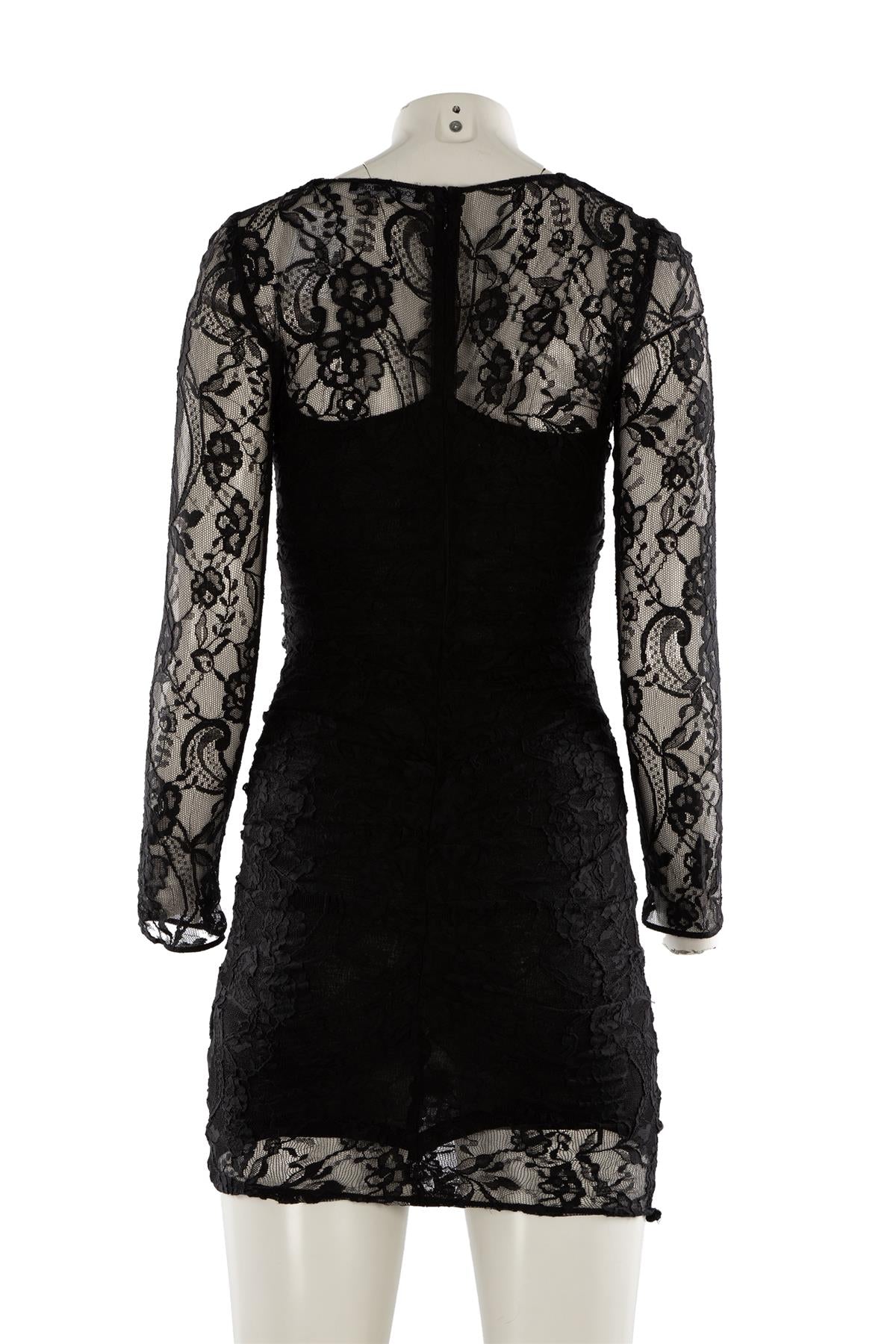 Dolce & Gabbana Black Lace Mini Dress. Black. Long Sleeve. Scoop Neck. Zip fastening - Back. No composition label. IT 38 (UK 6, US 2, FR 34). Bust: 27 in. Waist: 22 in. Hips: 28 in. Length: 35 in.