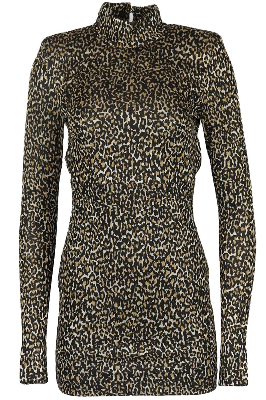 - Dundas + Revolve open back leopard jacquard stretch mini dress.