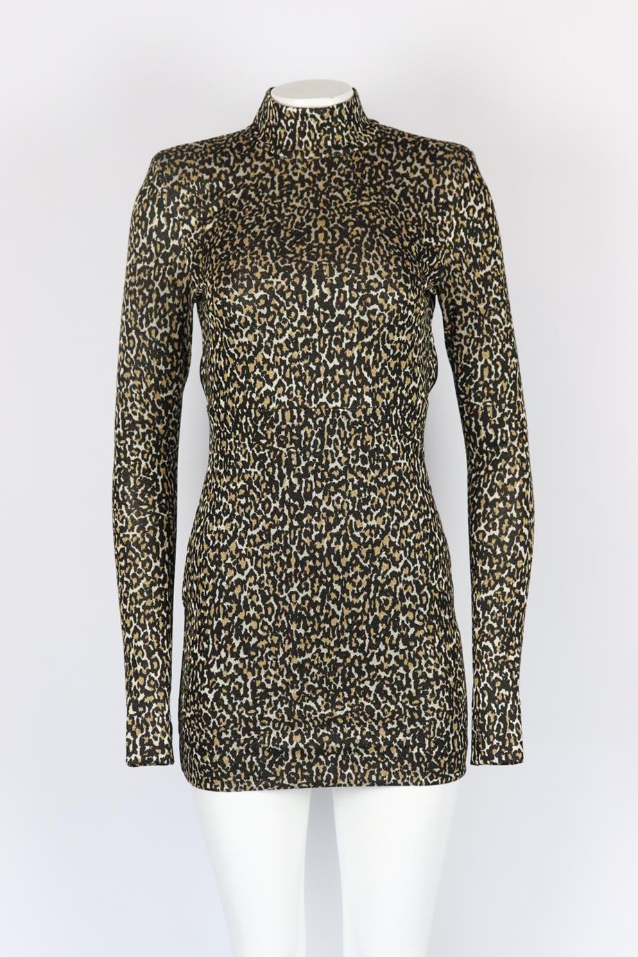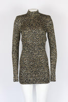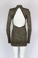 DUNDAS + REVOLVE OPEN BACK LEOPARD JACQUARD STRETCH MINI DRESS SMALL
