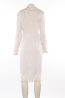 Loewe White Cotton Maxi Dress. White. Long Sleeve. Crewneck. Button fastening - Front. 65% Polyester, 35% Cotton. FR 38 (UK 10, US 6, IT 42). Bust: 38 in. Waist: 36 in. Hips: 45 in. Length: 43.5 in.