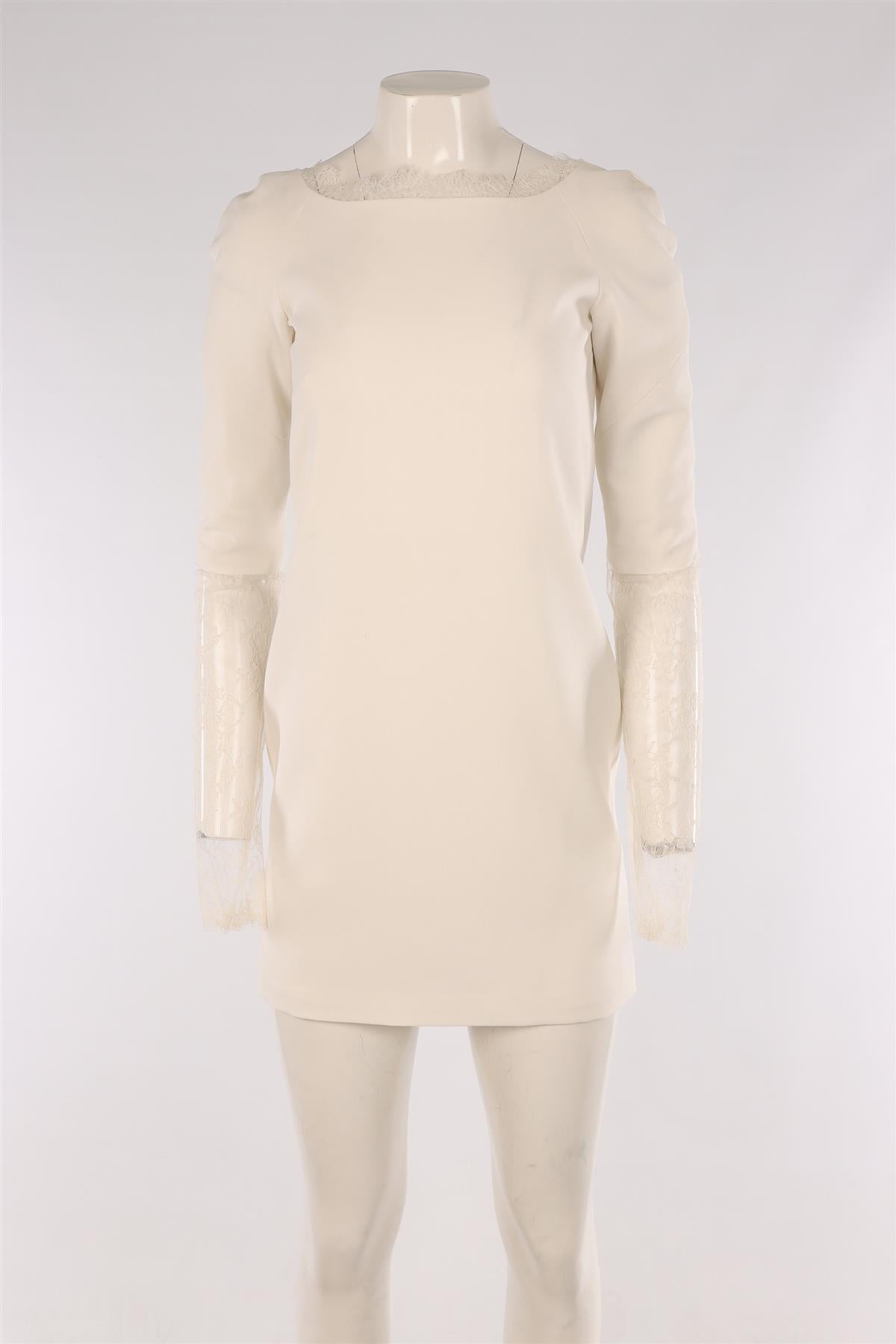Rime Arodaky White Woven Mini Dress. White. Long Sleeve. Boat Neck. Zip fastening - Back. 100% Polyester, 61% Polyamide, 39% Cotton. FR 36 (UK 8, US 4, IT 40). Bust: 38 in. Waist: 34 in. Hips: 40 in. Length: 33 in.