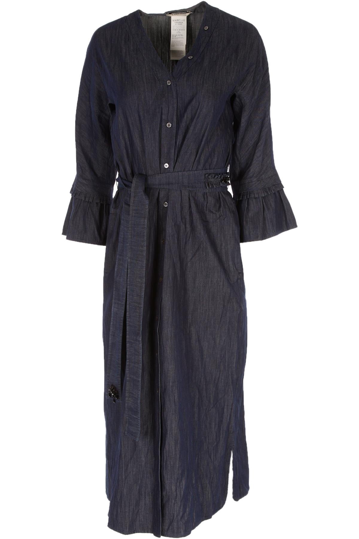 S Max Mara Navy Chambray Maxi Dress. Navy. Short Sleeve. V-Neck. Button fastening - Front. 100% Cotton. IT 42 (UK 10, US 6, FR 38). Bust: 38 in. Waist: 36 in. Hips: 48 in. Length: 50 in.