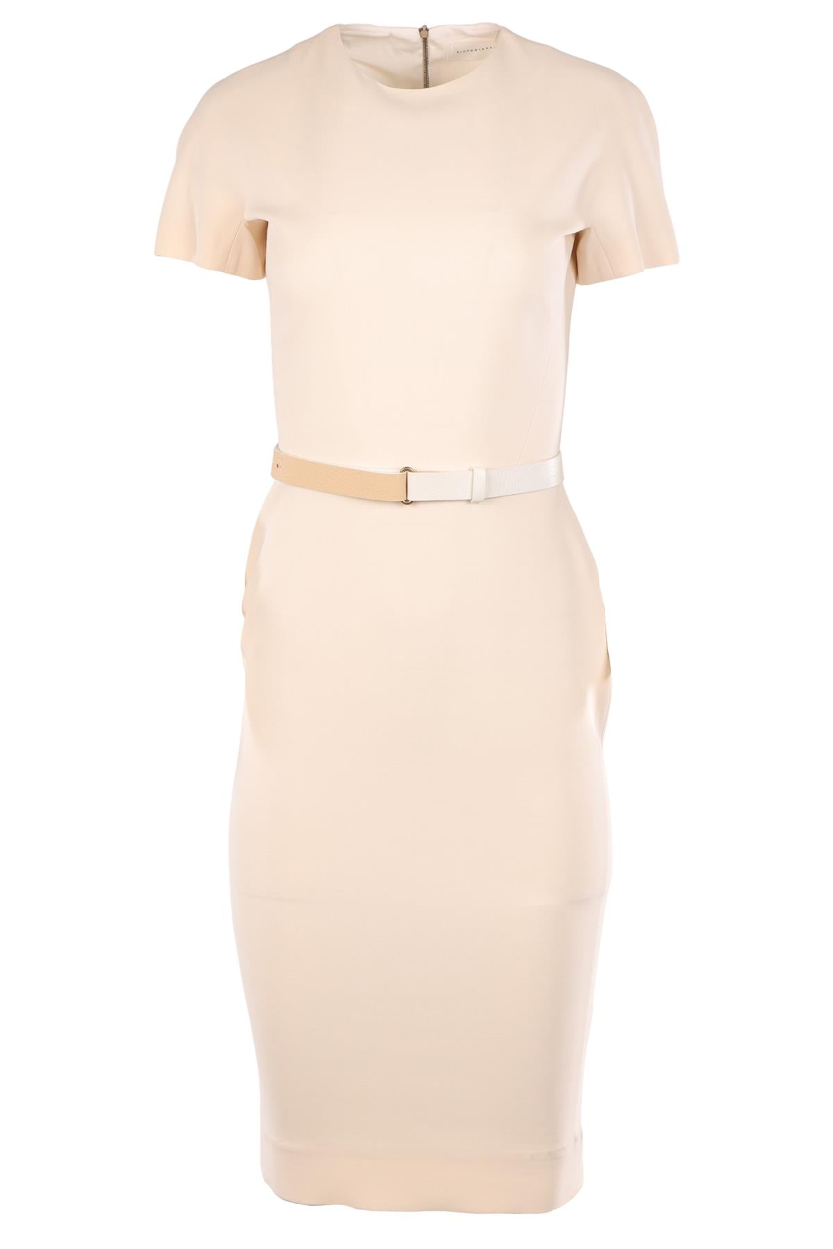 Victoria Beckham Cream Wool Midi Dress. Cream. Short Sleeve. Crewneck. Zip fastening - Back. 50% Silk, 50% Wool, 100% Cotton. UK 10 (US 6, FR 38, IT 42). Bust: 36 in. Waist: 28 in. Hips: 38 in. Length: 44.5 in.