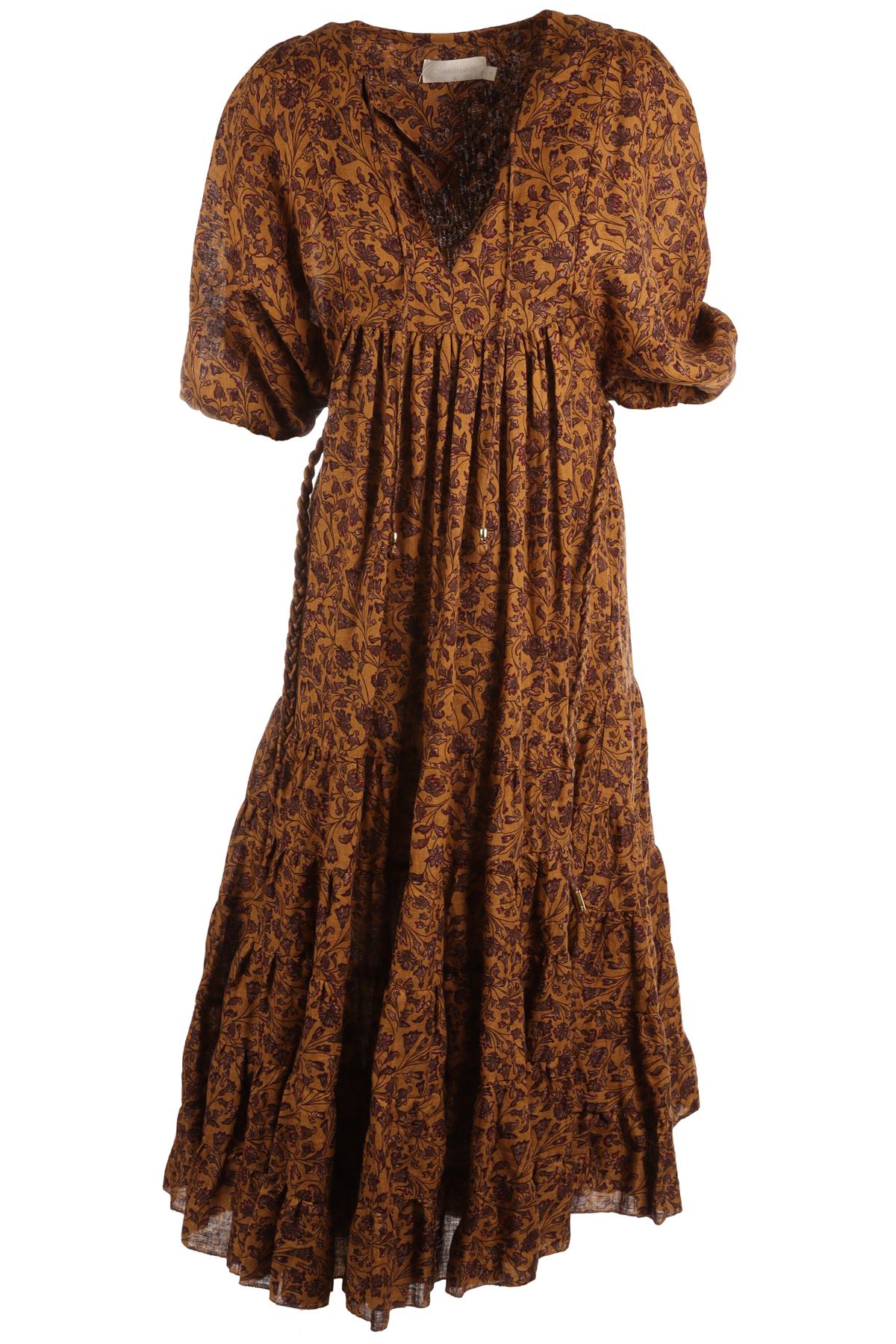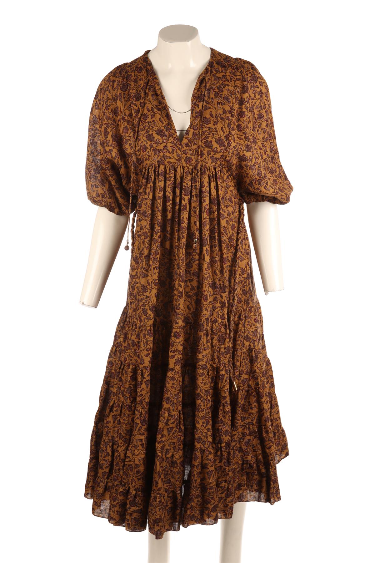 ZIMMERMANN BROWN COTTON MINI DRESS 0 UK 8