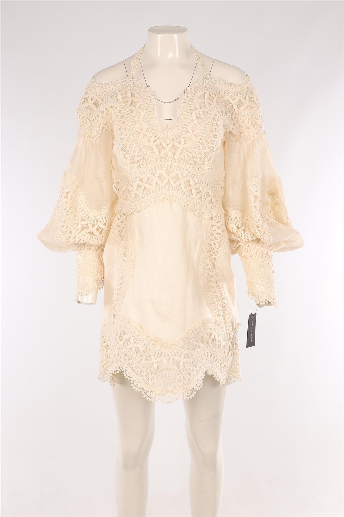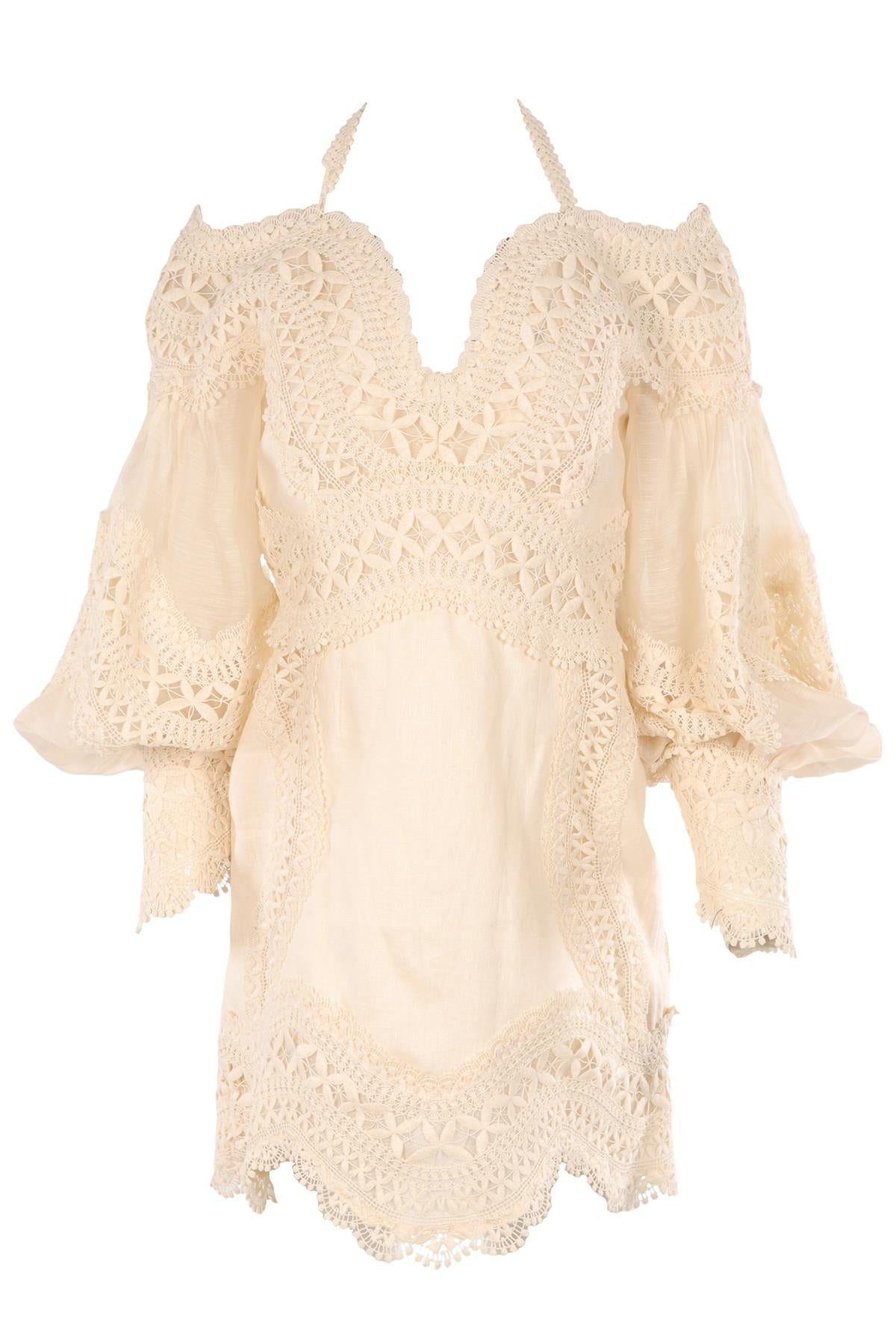 ZIMMERMANN CREAM LINEN MINI DRESS 2 UK 12