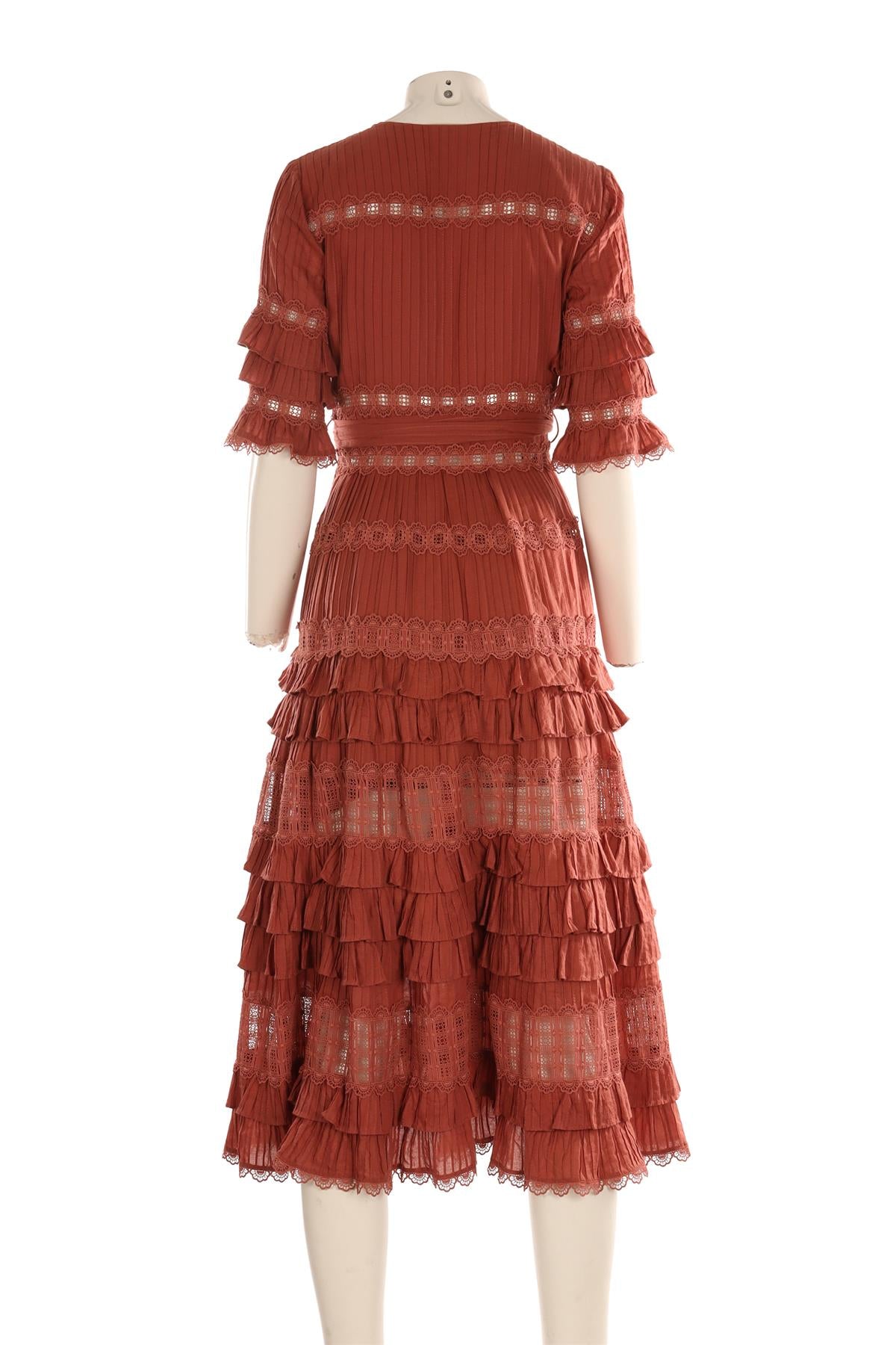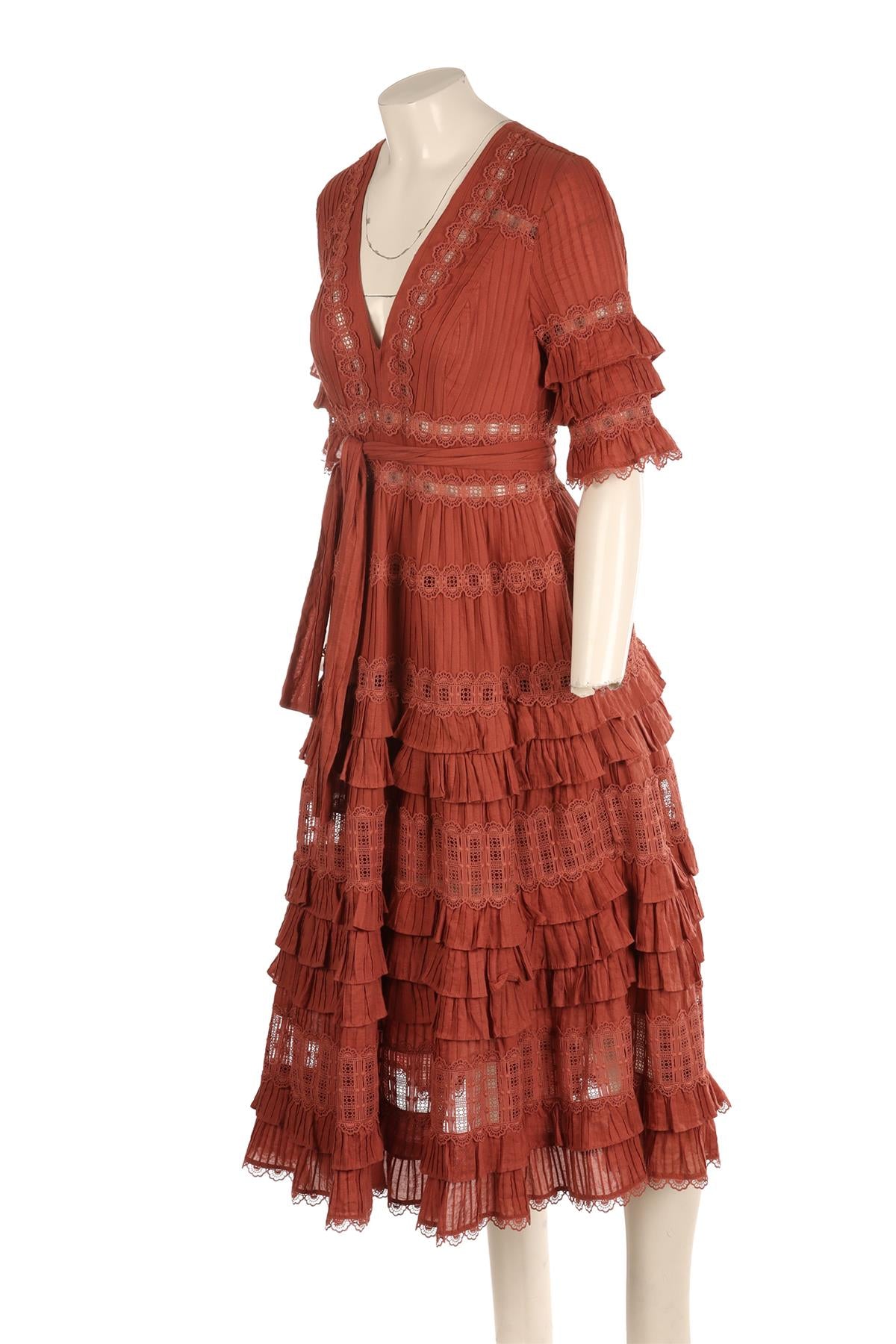 Zimmermann Pink Cotton Maxi Dress. Pink. Short Sleeve. V-Neck. Zip fastening - Side. 100% Cotton. 1 (UK 10, US 6, FR 38, IT 42). Bust: 35 in. Waist: 28 in. Hips: 46 in. Length: 48 in.