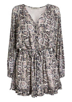 This Kaylee playsuit from AllSaints is sure to serve as a distinctive addition to your wardrobe. Exhibiting a striking snake print, this piece is detailed with gathered sleeves and is equipped with a tie-belt waist that draws in your silhouette to ensure a form-flattering fit. 100% Viscose.