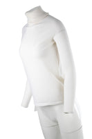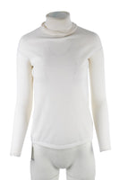 Alex Eagle Ivory Cashmere Top. Ivory. Long Sleeve. Turtleneck. Pull on. 93% Cashmere, 7% Polyester. Small (UK 8, US 4, FR 36, IT 40). Bust: 36 in. Waist: 34 in. Hips: 34 in. Length: 23 in.