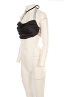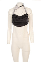 Nué Studio Black Satin Top. Black. Sleeveless. Halterneck. Snap button fastening - Back. 95% Silk, 5% Elastane. XSmall (UK 6, US 2, FR 34, IT 38). Bust: 34 in. Length: 6 in.