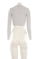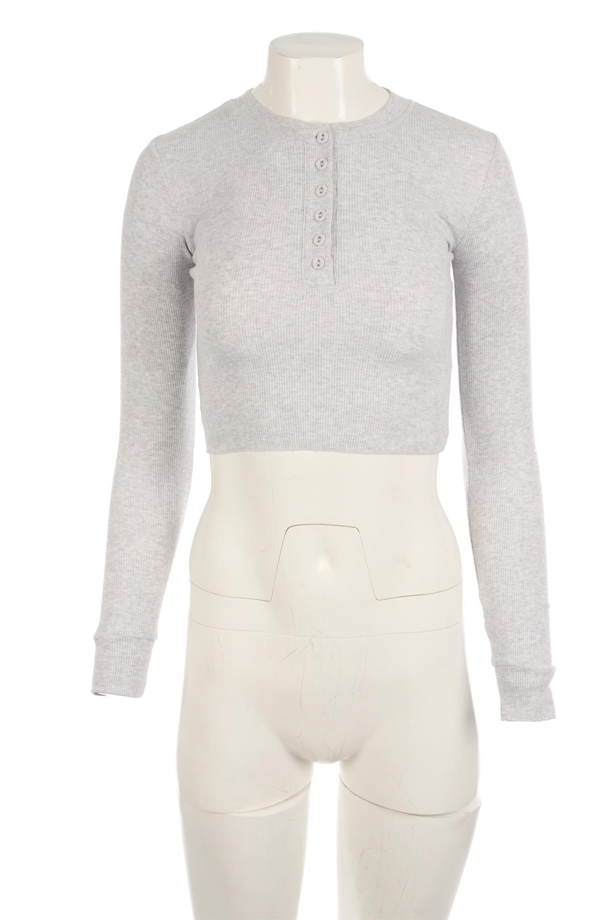 Skims Grey Cotton Top. Grey. Long Sleeve. Crewneck. Pull on. 95% Cotton, 5% Elastane. XSmall (UK 6, US 2, FR 34, IT 38). Bust: 22 in. Waist: 20 in. Hips: 20 in. Length: 14 in.
