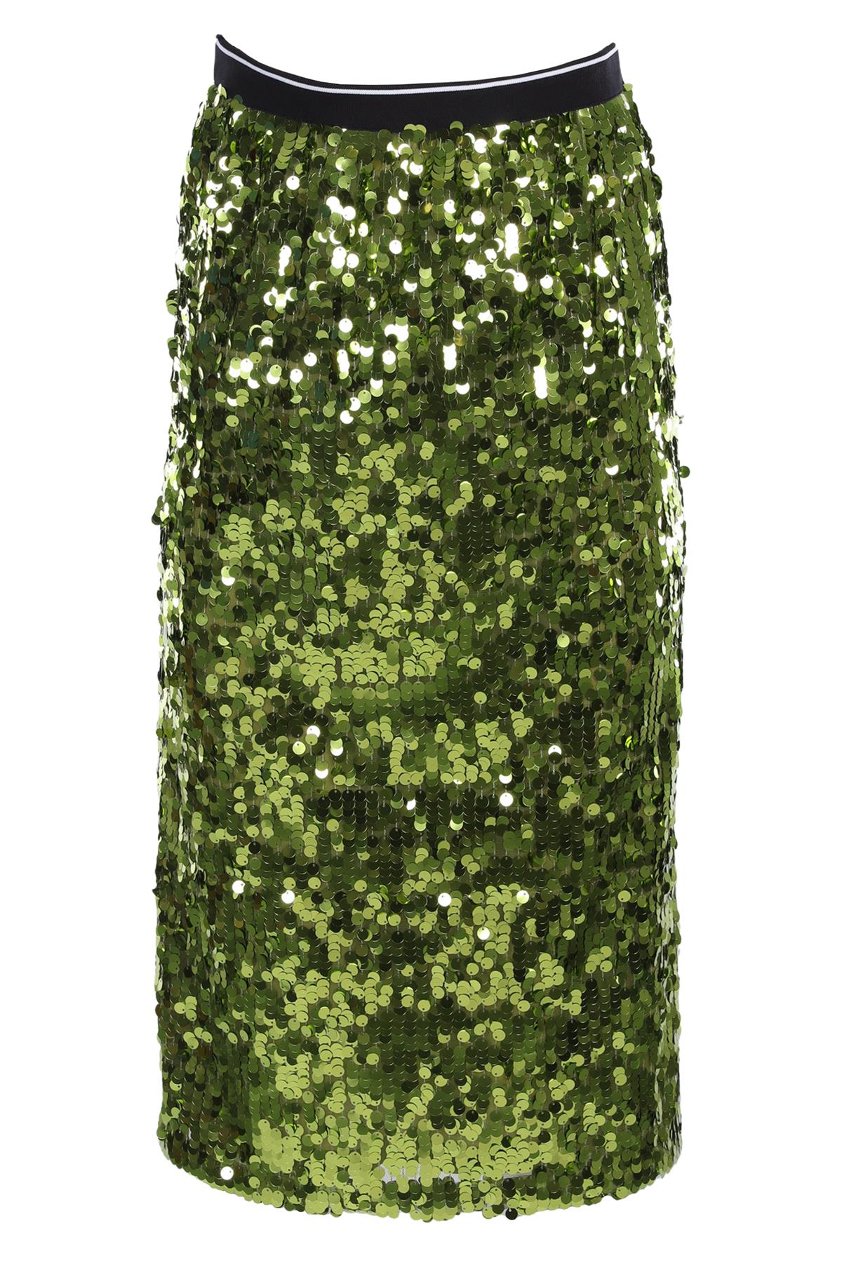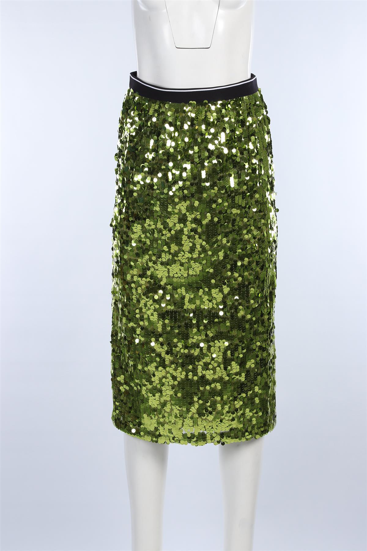 PLAN C GREEN SEQUIN MIDI SKIRT FR 38 UK 10
