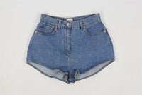Magda Butrym Blue Denim Shorts. Blue. Zip fastening - Front. No composition label. FR 38 (UK 10, US 6, IT 42). Waist: 26 in. Hips: 19.5 in. Length: 11.5 in. Inseam: 1 in.