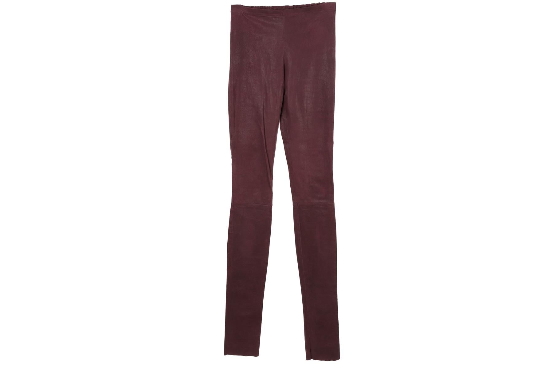 Haider Ackermann Purple Leather Skinny Pants. Purple. Pull on. 100% Leather. FR 34 (UK 8, US 4, IT 38). Waist: 25 in. Hips: 32 in. Length: 47 in. Inseam: 39 in. Rise: 8 in.