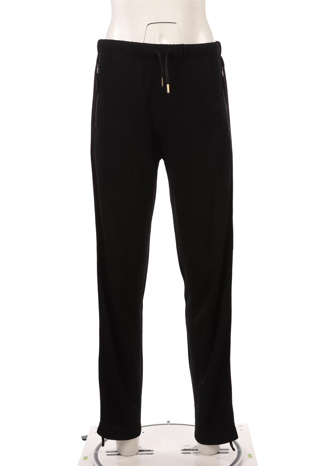 Jean Paul Gaultier Black Vintage Jersey Straight Leg Pants. Black. Pull on. 90% Rayon, 10% Polyamide. IT 42 (UK 10, US 6, FR 38). Waist: 29 in. Hips: 40 in. Length: 42.5 in. Inseam: 34 in. Rise: 11 in.