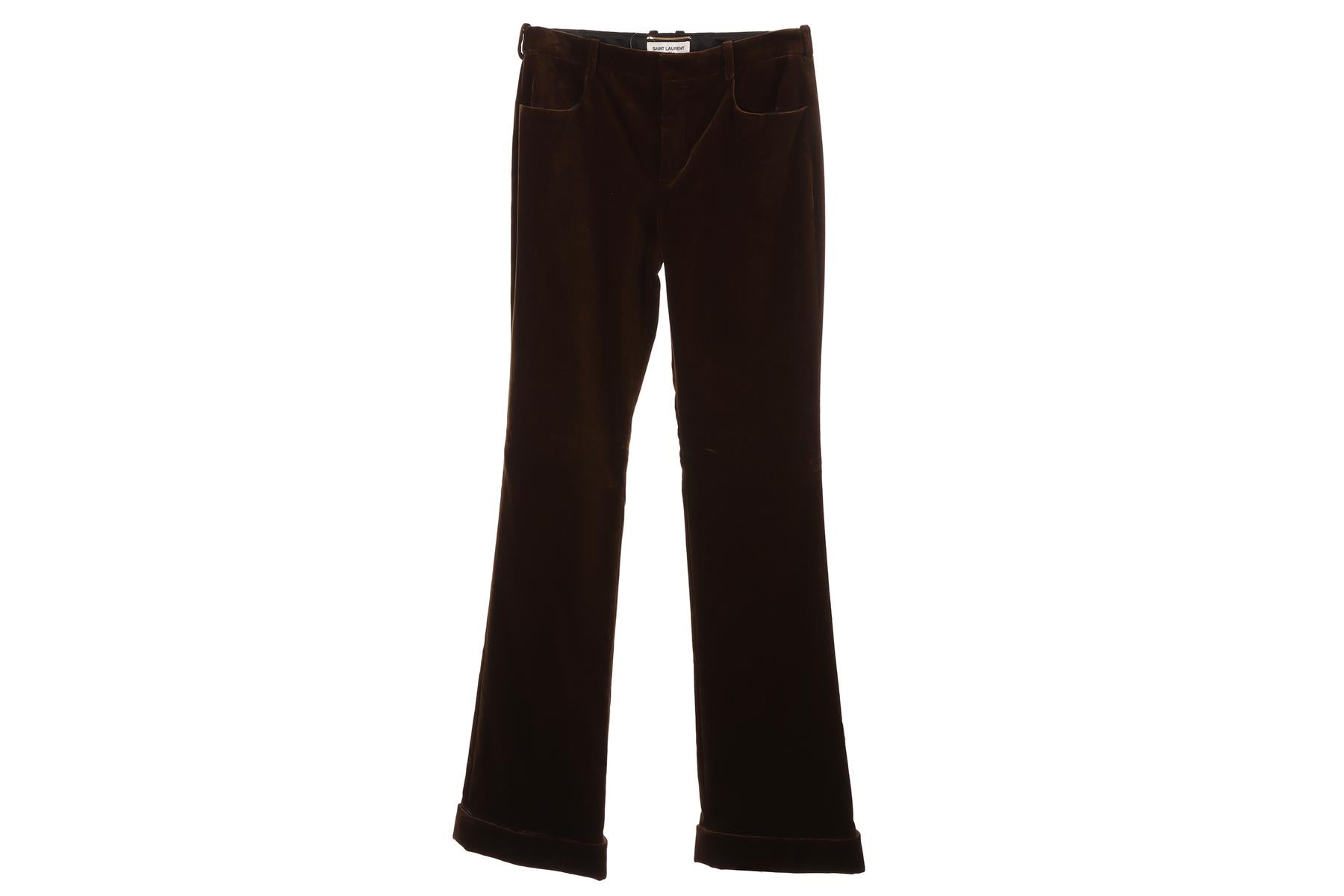 Saint Laurent Green Velvet Straight Leg Pants. Green. Zip fastening - Front. 100% Cotton. FR 38 (UK 10, US 6, IT 42). Waist: 30 in. Hips: 39 in. Length: 43.5 in. Inseam: 35 in. Rise: 9 in.
