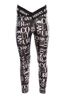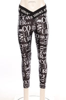 Versace Jeans Couture Black Leggings. Black and White. Pull On. 80% Polyester, 20% Elastane. IT 42 (UK 10, US 6, FR 38). Waist: 26 in. Hips: 38 in. Length: 26 in.