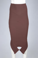 ANDREA ADAMO BROWN KNIT MIDI SKIRT XSMALL