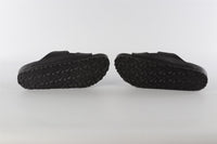 Birkenstock Black Rubber Sandals. Black. Slips on. EU 38 (UK 5, US 8). Insole: 9.5 in. Heel Height: 1 in.