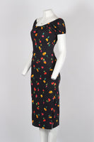 CAROLINE CONSTAS FLORAL PRINT SILK BLEND MIDI DRESS XSMALL