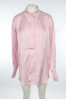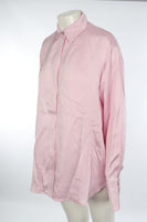 Jil Sander Pink Satin Shirt. Pink. Long Sleeve. Crewneck. Button fastening - Front. 100% Viscose. FR 36 (UK 8, US 4, IT 40). Bust: 48 in. Waist: 48 in. Hips: 50 in. Length: 33 in.