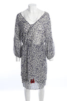 Figure Blue Silk Mini Dress. Blue. Long Sleeve. V-Neck. Pull on. 100% Silk. Small (UK 8, US 4, FR 36, IT 40). Bust: 40 in. Waist: 42 in. Hips: 46 in. Length: 41 in.