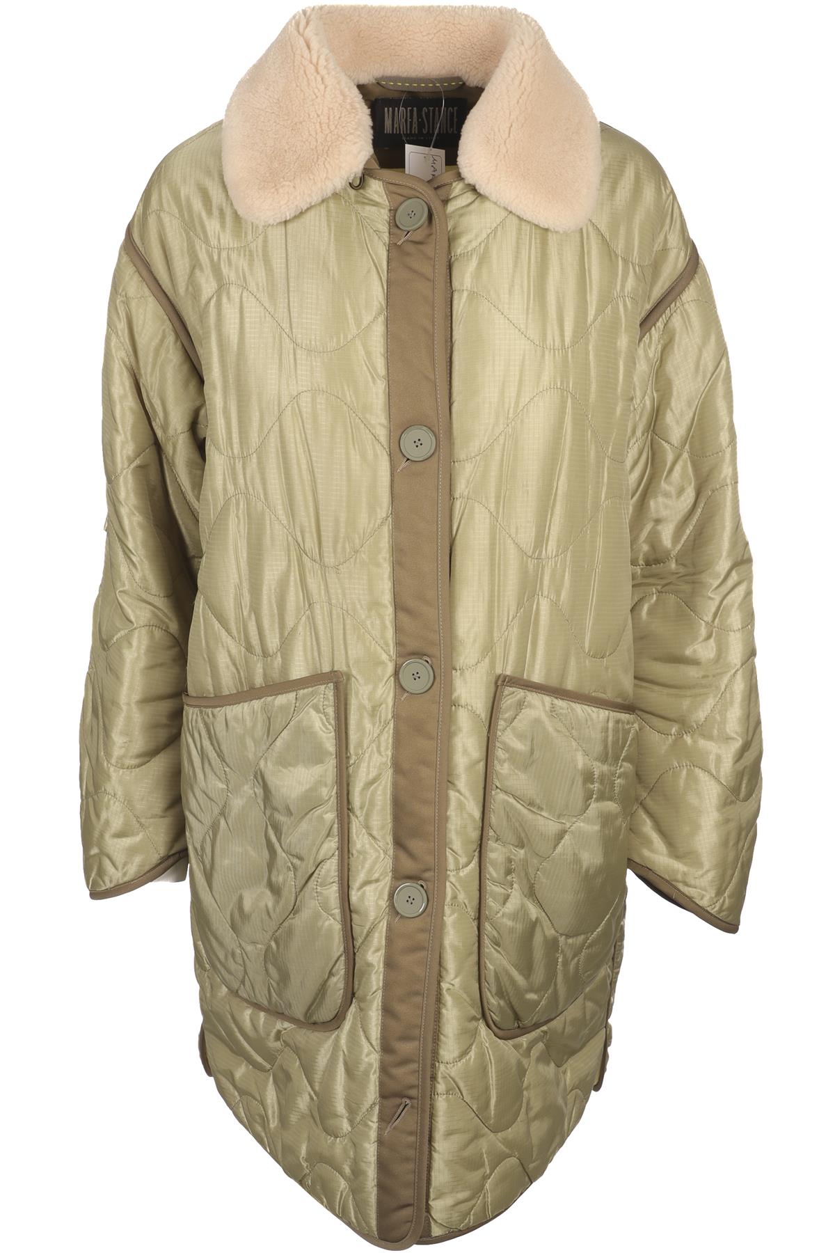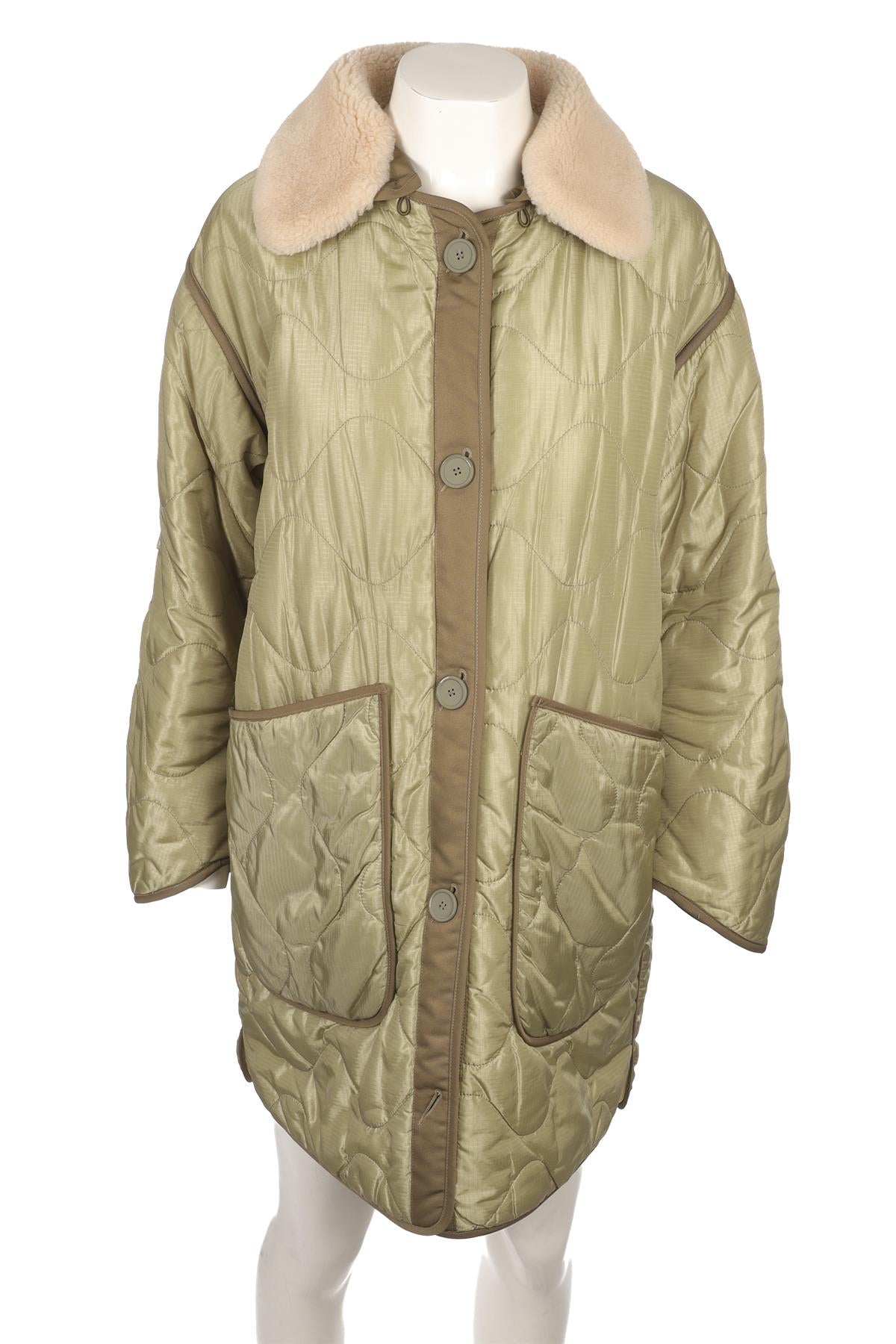 Marfa Stance Green Padded Shell Coat. Green. Long Sleeve. Crewneck. Button fastening - Front. 100% Nylon, 100% Polyester. Small (UK 8, US 4, FR 36, IT 40). Shoulder to Shoulder: 19.5 in. Bust: 44 in. Waist: 46 in. Hips: 50 in. Length: 35 in.