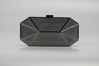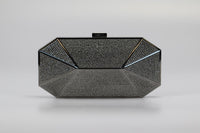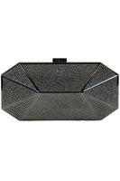 - Stark Crystal Embellished Gunmetal Tone Clutch.