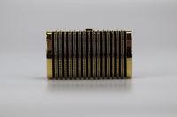 STARK CRYSTAL EMBELLISHED SUEDE AND GOLD TONE CLUTCH