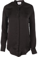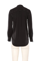 Dkny Black Silk Shirt. Black. Long Sleeve. Crewneck. Button fastening - Front. 93% SIlk, 7% Elastane, 100% Modal. XSmall (UK 6, US 4, FR 34, IT 38). Bust: 39 in. Waist: 40 in. Hips: 42 in. Length: 28 in.