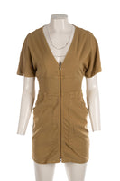 A.L.C. Green Cotton Mini Dress. Green. Short Sleeve. V-Neck. Zip fastening - Front. 97% Cotton, 3% Elastane. US 0 (UK 4, FR 32, IT 36). Bust: 30 in. Waist: 26 in. Hips: 36 in. Length: 33 in.