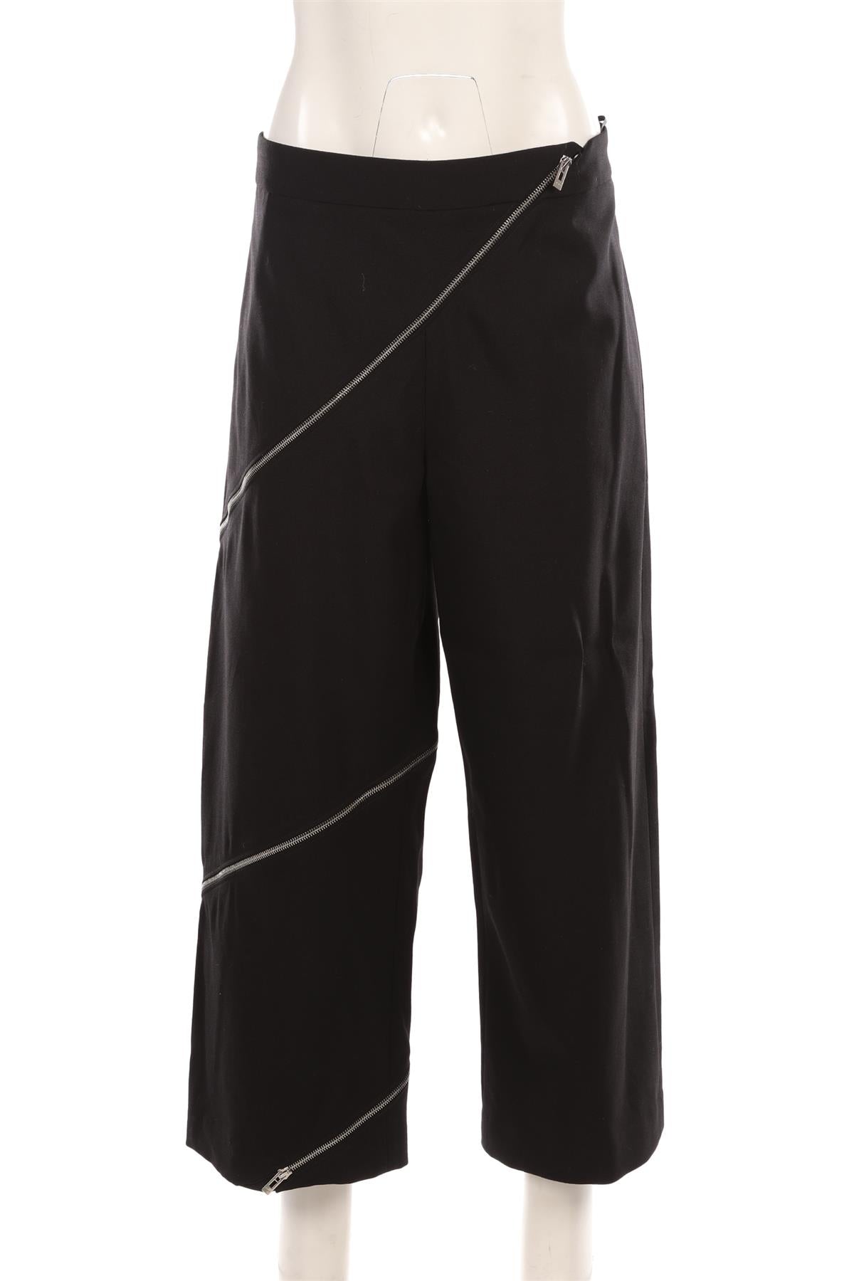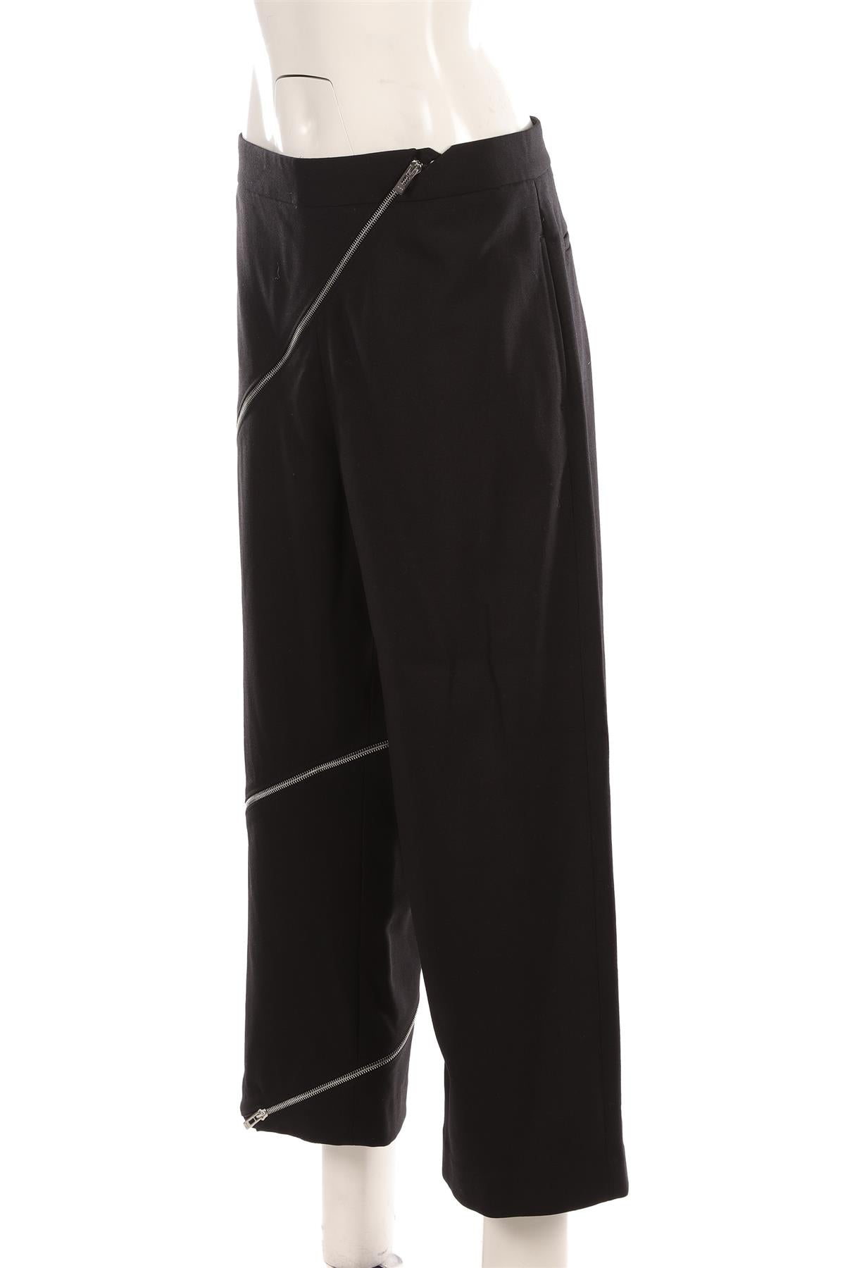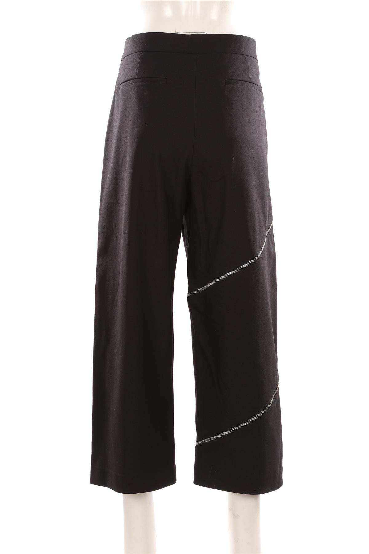 Alaïa Black Wool Wide Leg Pants. Black. Zip fastening - Front. 98% Virgin wool, 2% Elastane. FR 42 (UK 14, US 10, IT 46). Waist: 36 in. Hips: 44 in. Length: 37 in. Inseam: 26 in. Rise: 12 in.