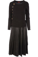 Altuzarra Black Cashmere Midi Dress. Black. Long Sleeve. Crewneck. Button fastening - Front. 100% Cashmere, 55% Polyurethane, 45% Polyester. FR 36 (UK 8, US 4, IT 40). Bust: 30 in. Waist: 27 in. Hips: 33 in. Length: 48 in.