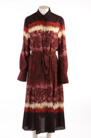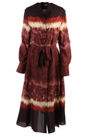Altuzarra Brown Crepe Maxi Dress. Brown, cream and red. Long Sleeve. Crewneck. Button fastening - Front. 100% Polyester. FR 40 (UK 12, US 8, IT 44). Bust: 34 in. Waist: 30 in. Hips: 41 in. Length: 52 in.